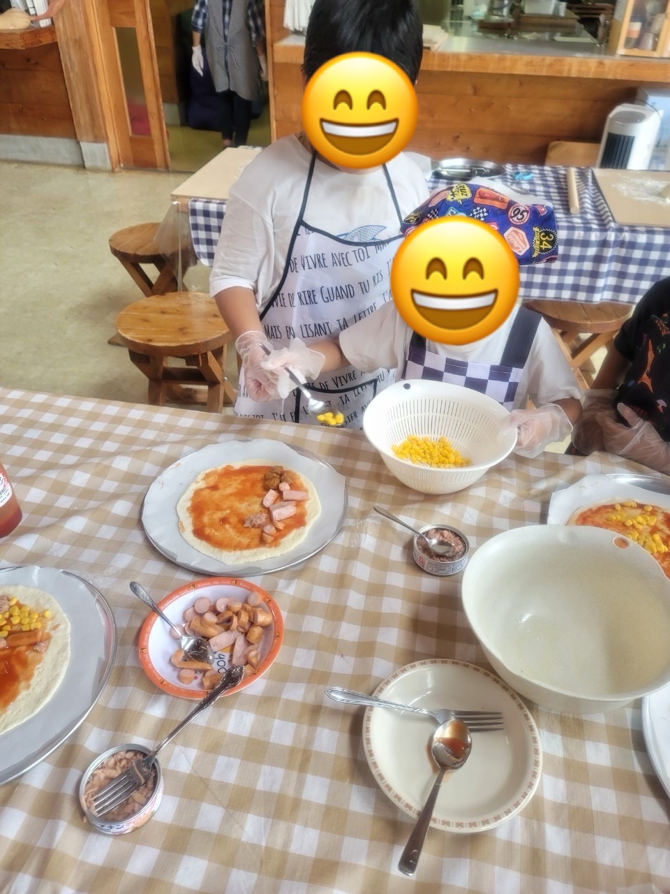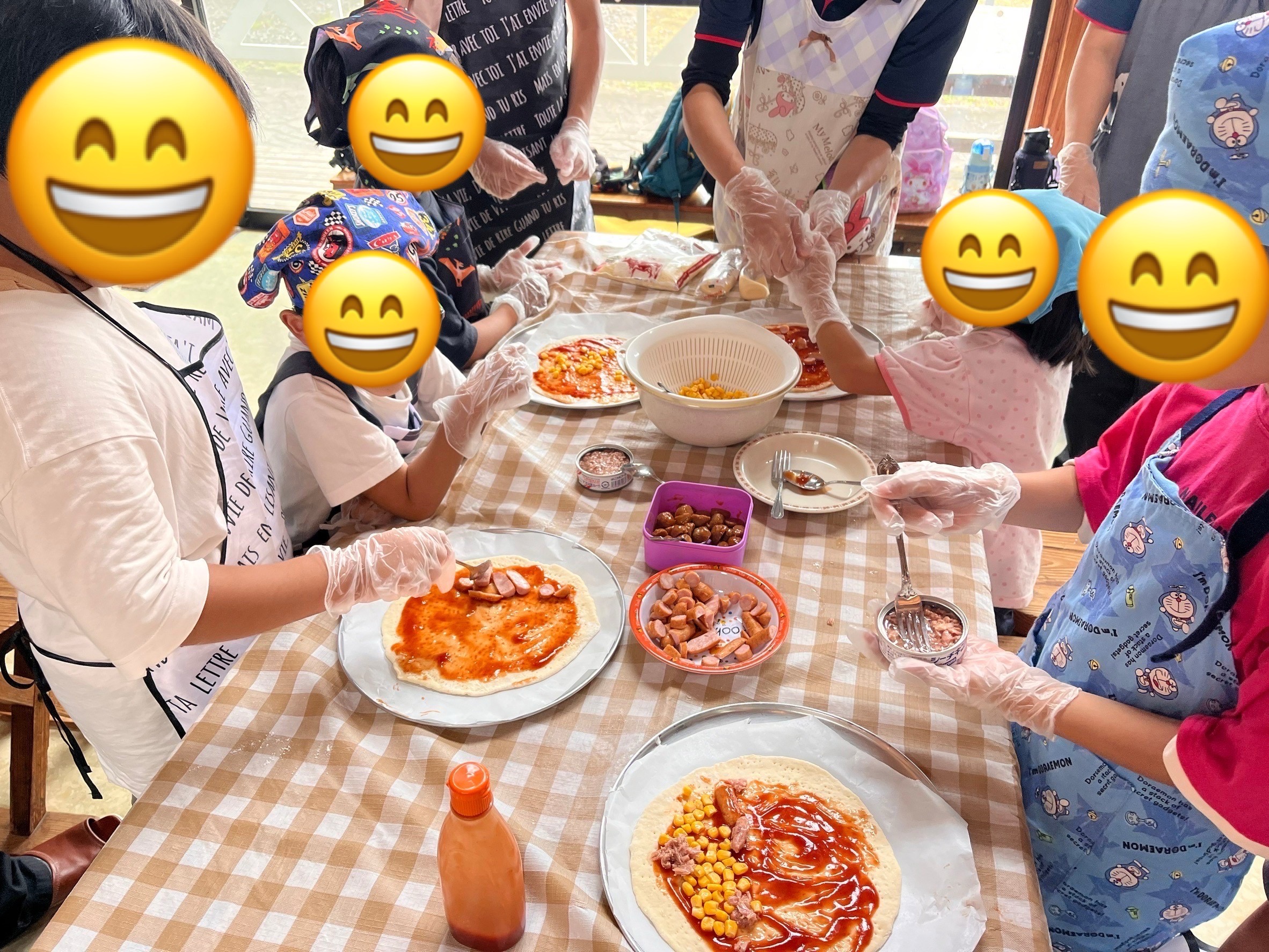生地をこねたり、チーズやウインナー、コーン等自分たちの好きなものをトッピングしました🌟