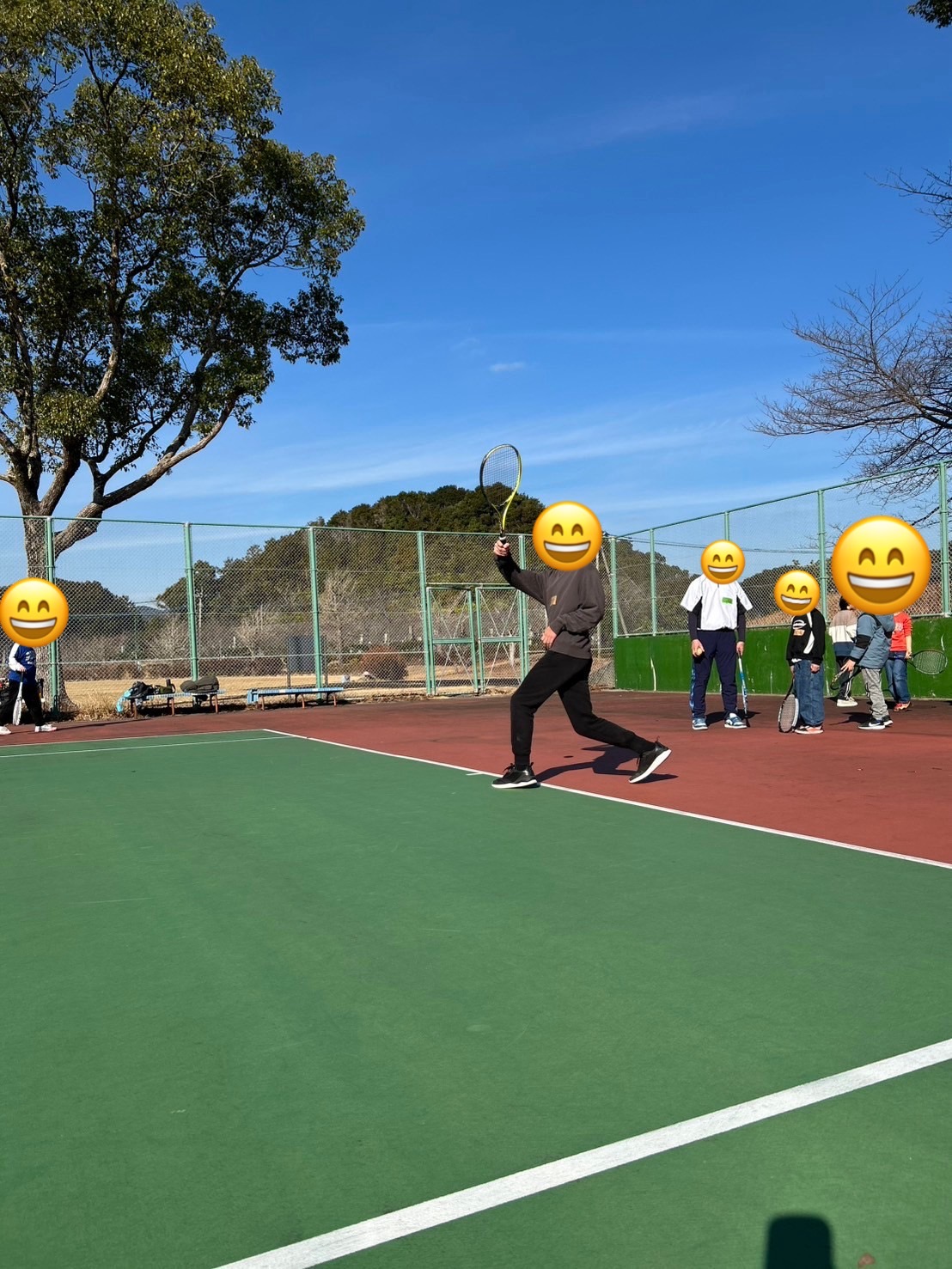 テニス教室は、良い天気に恵まれ、大園のあいびぃと日並のあいびぃとクラムボンさんの4事業所合同でおこないました🎾ウォーミングアップから始め、その場でボールを打つ練習や相手と打ち合いをする練習をしました🌟