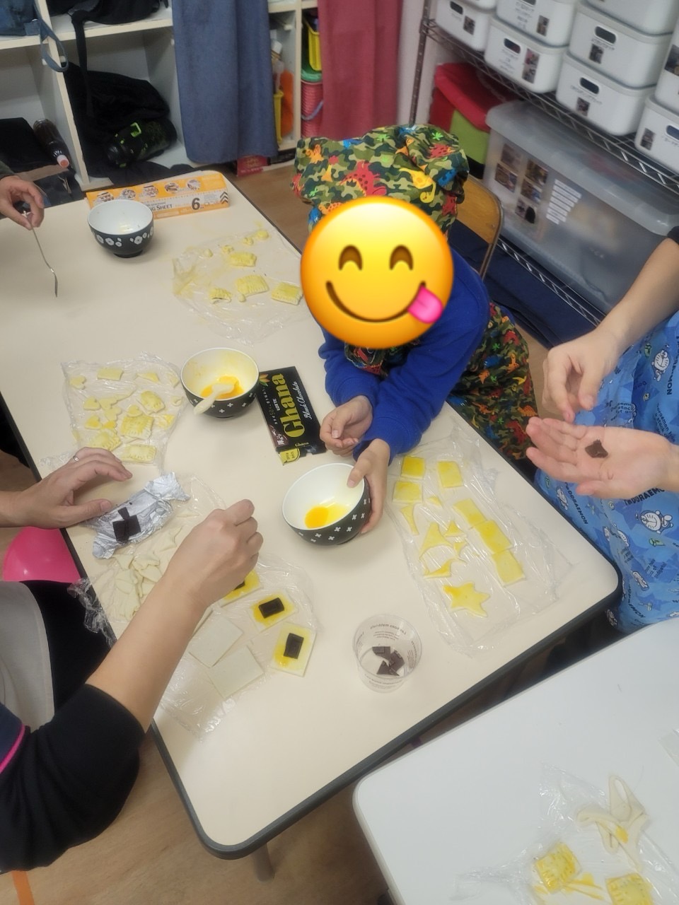 パイ生地の型どりや刷毛で卵黄を生地に塗ったり等々、作り方を確認しながら作業しました🥰