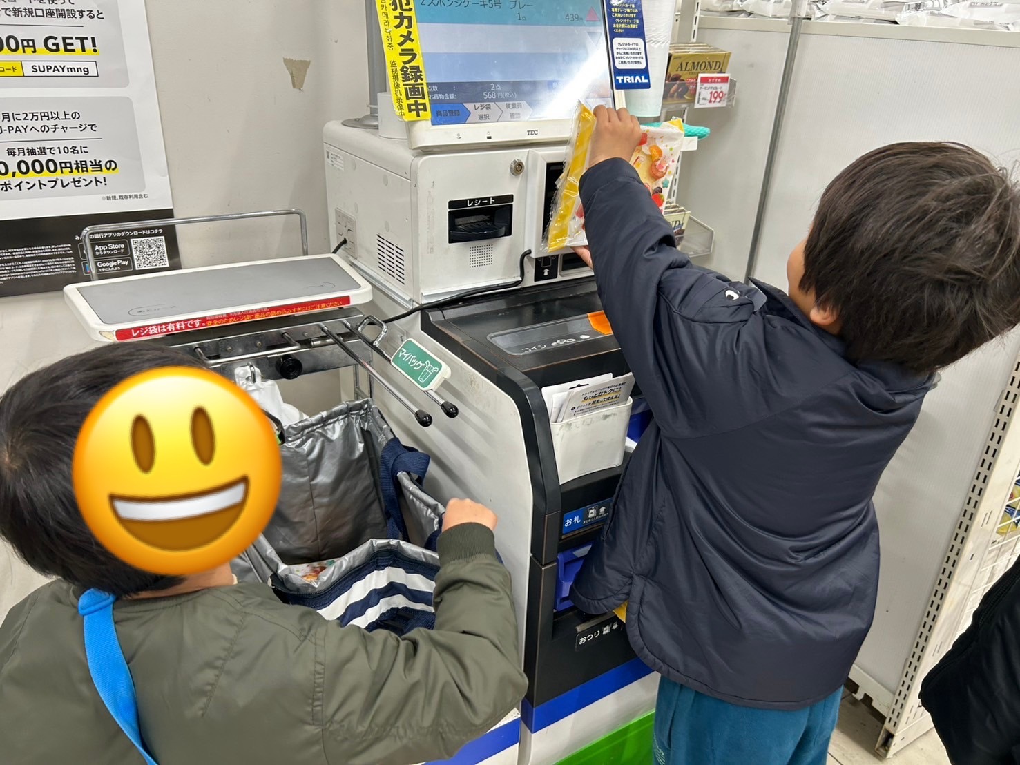 買い物メモを見ながら店内を回り、お会計まで上手にこなしていました💰