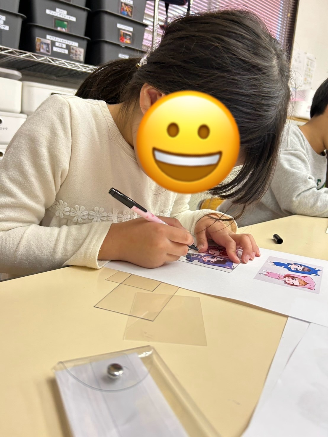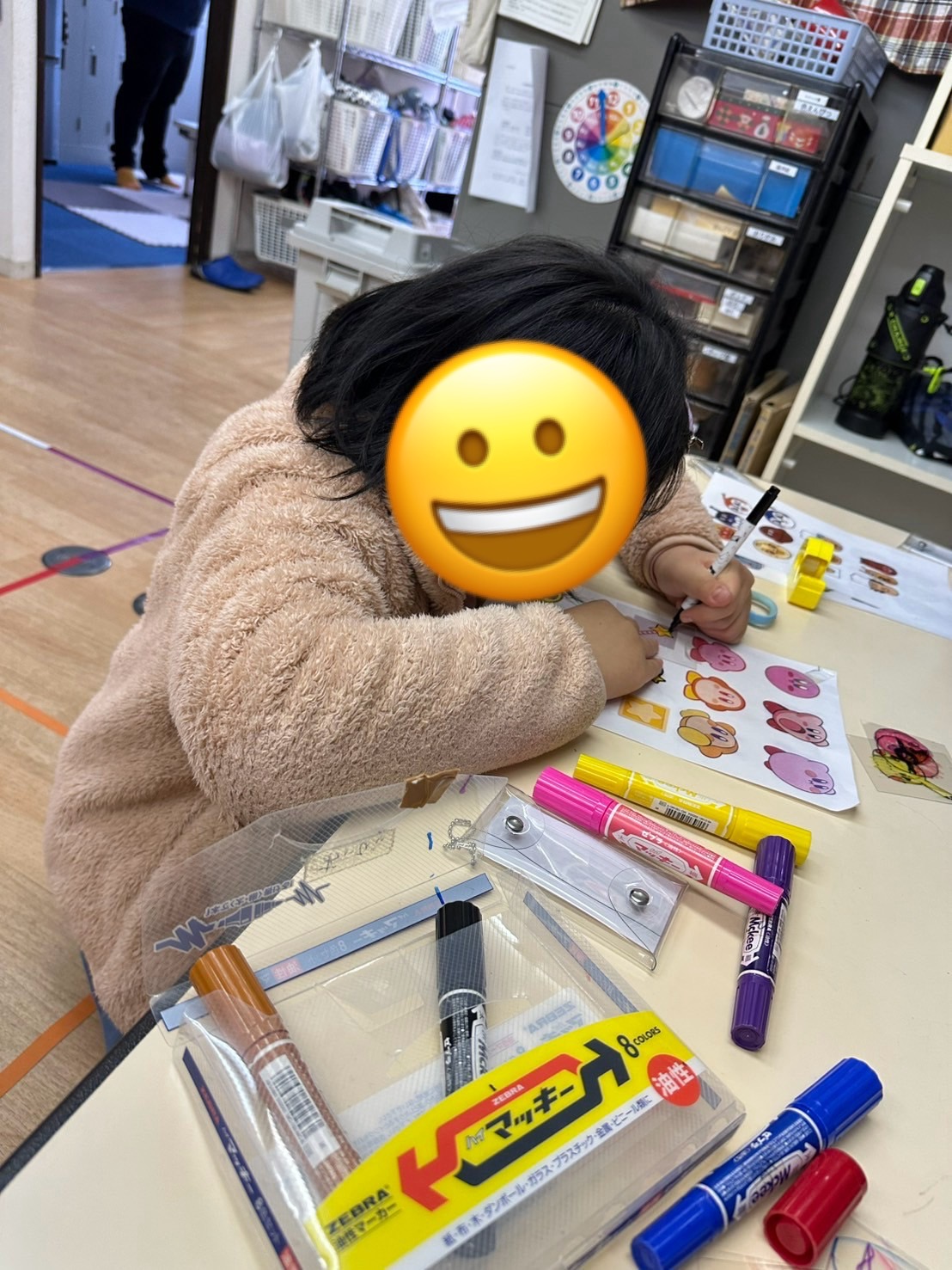 午後のプラ板工作では、自分の好きなイラストをプラ板に書き、色塗りまで丁寧におこないました