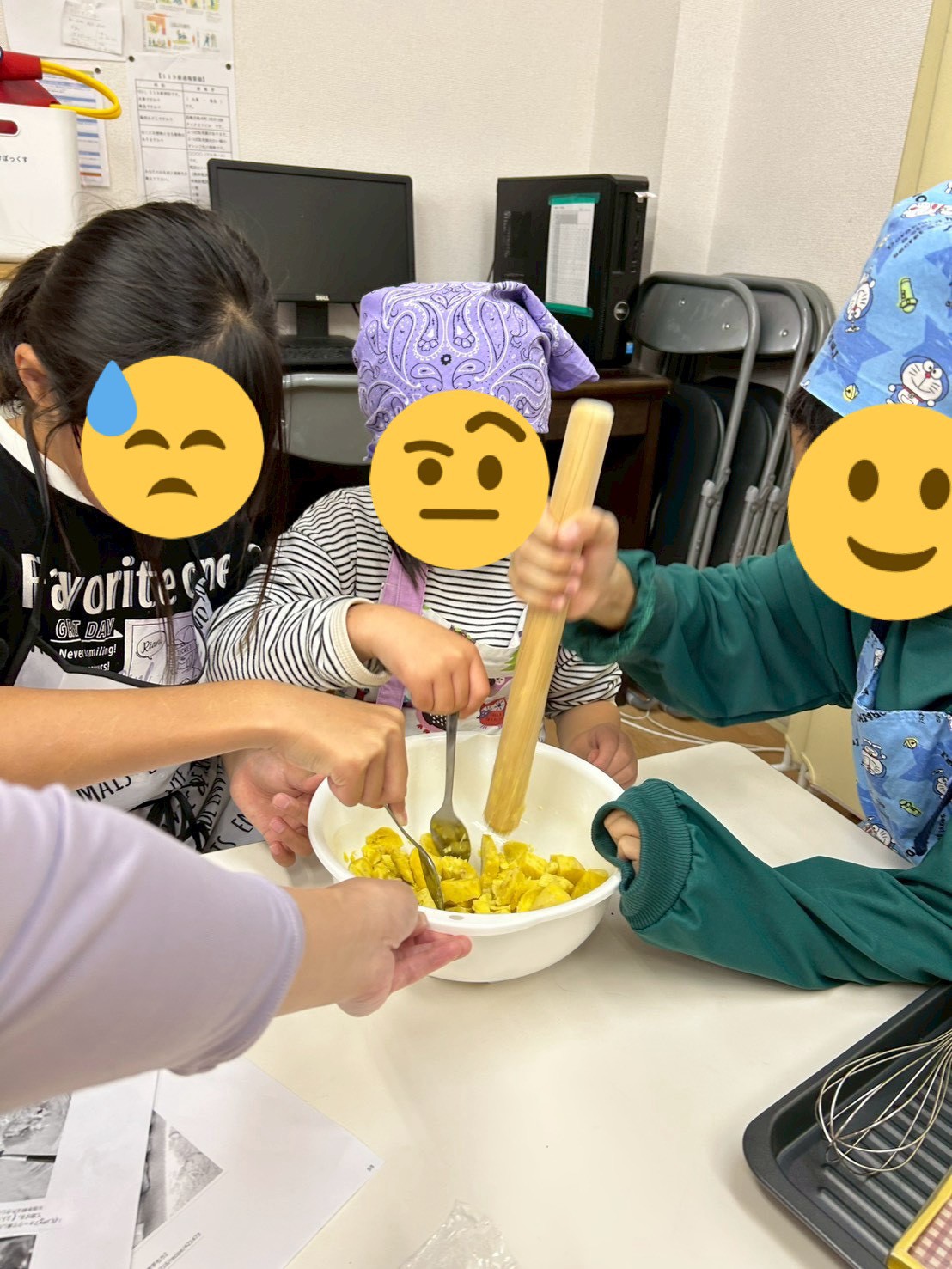 出来上がったスイートポテトはすっごく甘くて、みんな「おいしい〜!」ってニコニコしながら食べていました😋💕