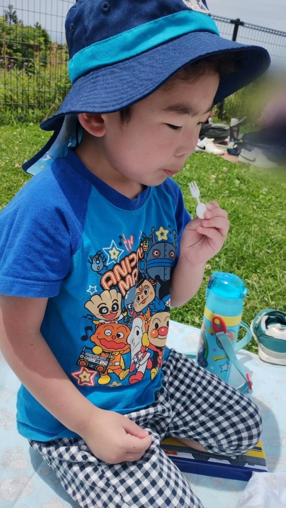 滑り台や渡り棒などの遊具で元気いっぱい遊んだり、やぎや羊と触れ合ったり、思い思いに楽しんだ後は、お待ちかねのお弁当タイム!