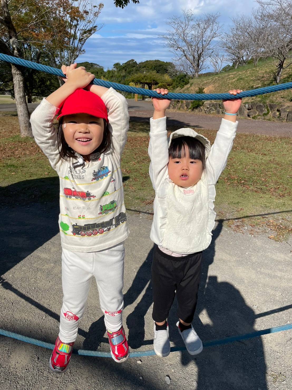 年度初めのころは丘から下を見て「こわい」と言っていた子どもも、一人で丘を降りて最後はたたたーっと駆け下りて遊んでいるところを見て、成長をしみじみと感じました✨
