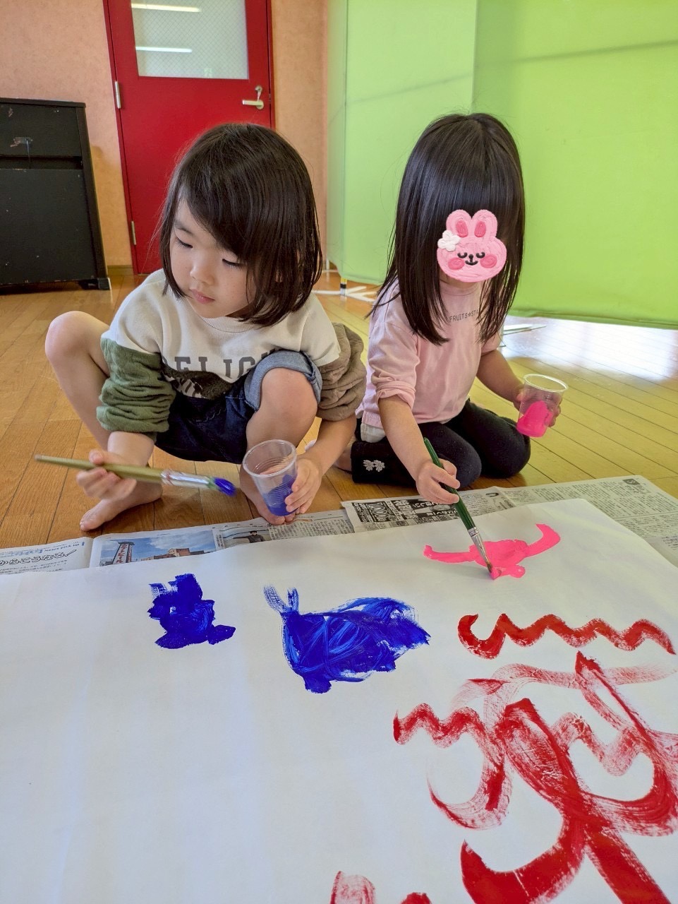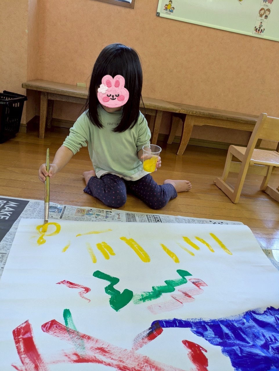 あいびぃでは、女の子達に絵の具で模造紙に絵を描いてもらい、