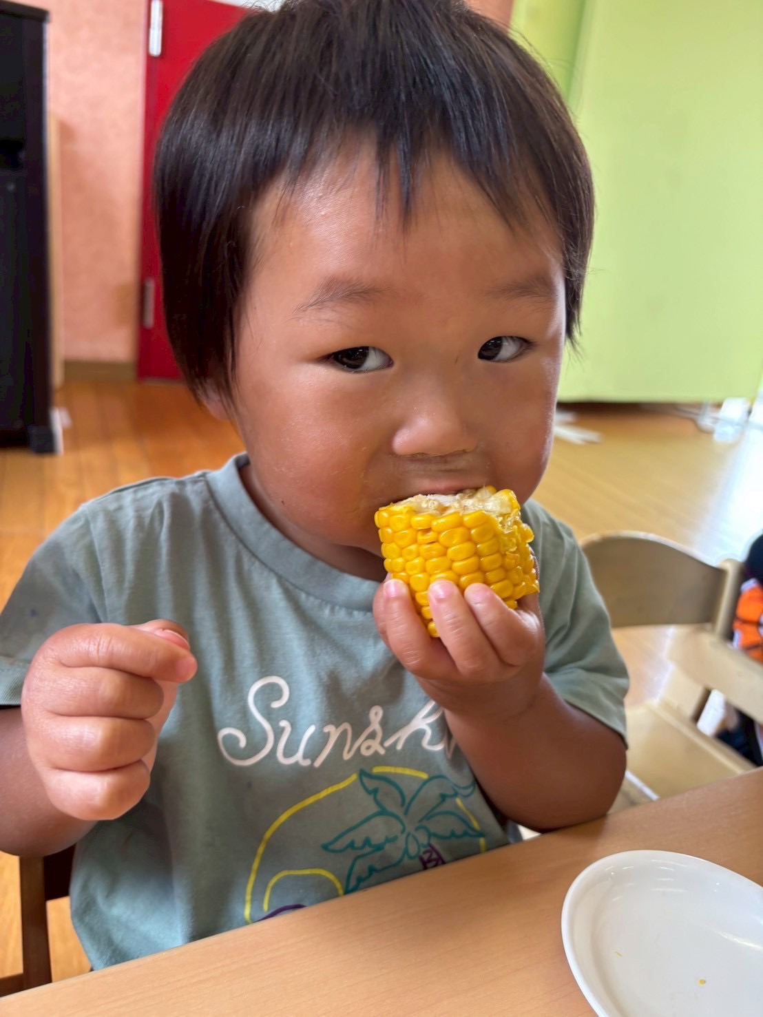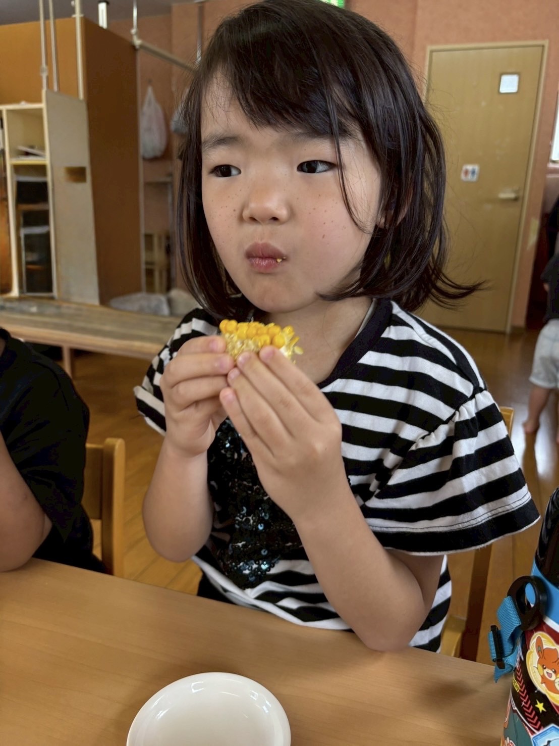 みんなで皮をむいたとうもろこしは、おやつに美味しく食べました♡
