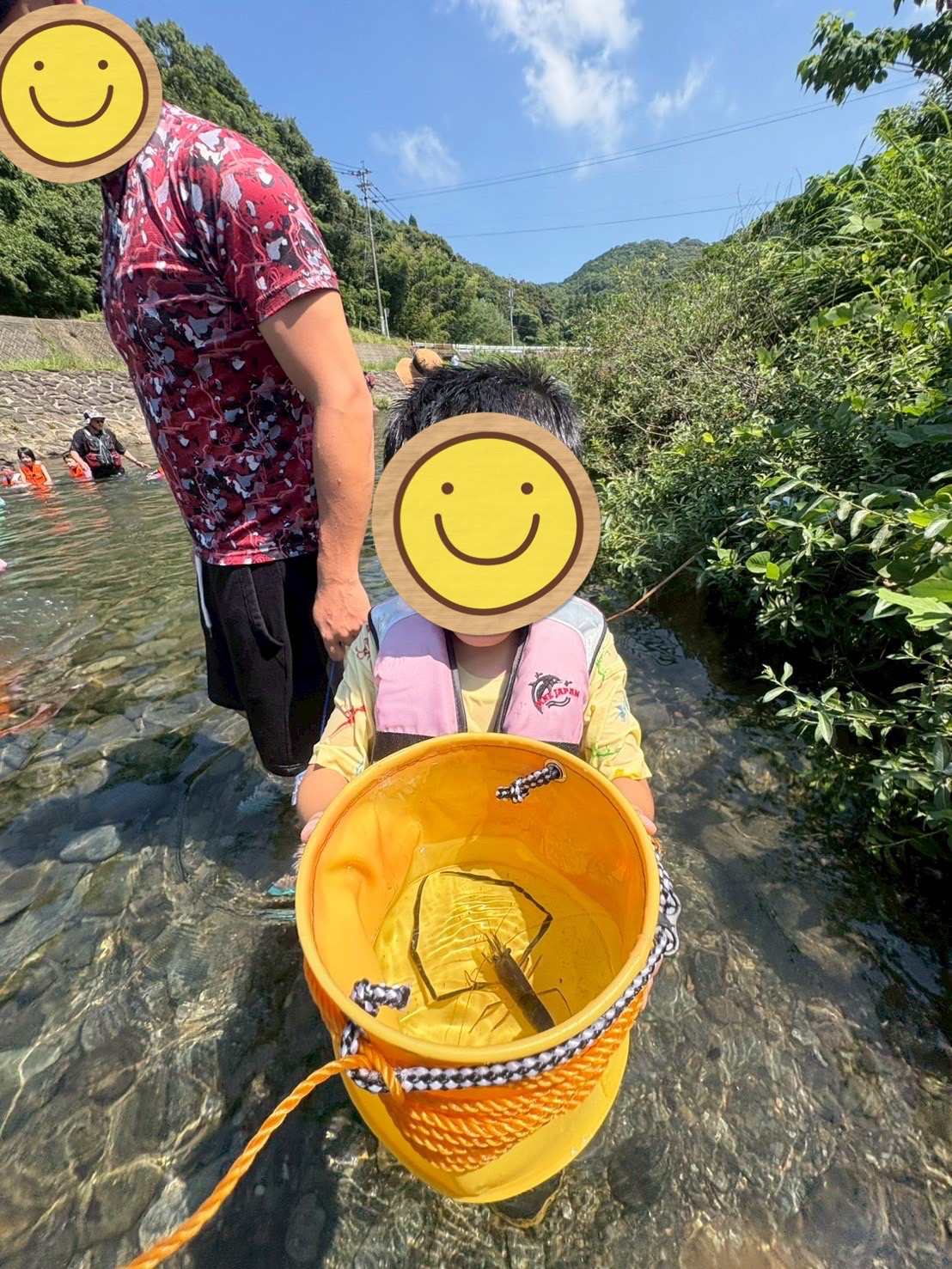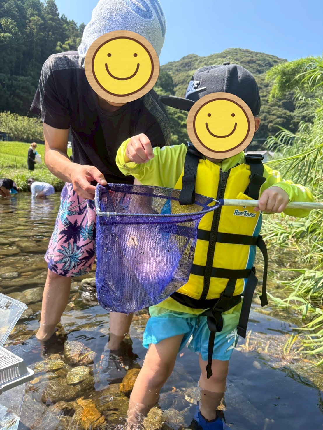 お父さんと魚やエビなどを捕まえて、「みてー♪」と嬉しそうに見せてくれる子
