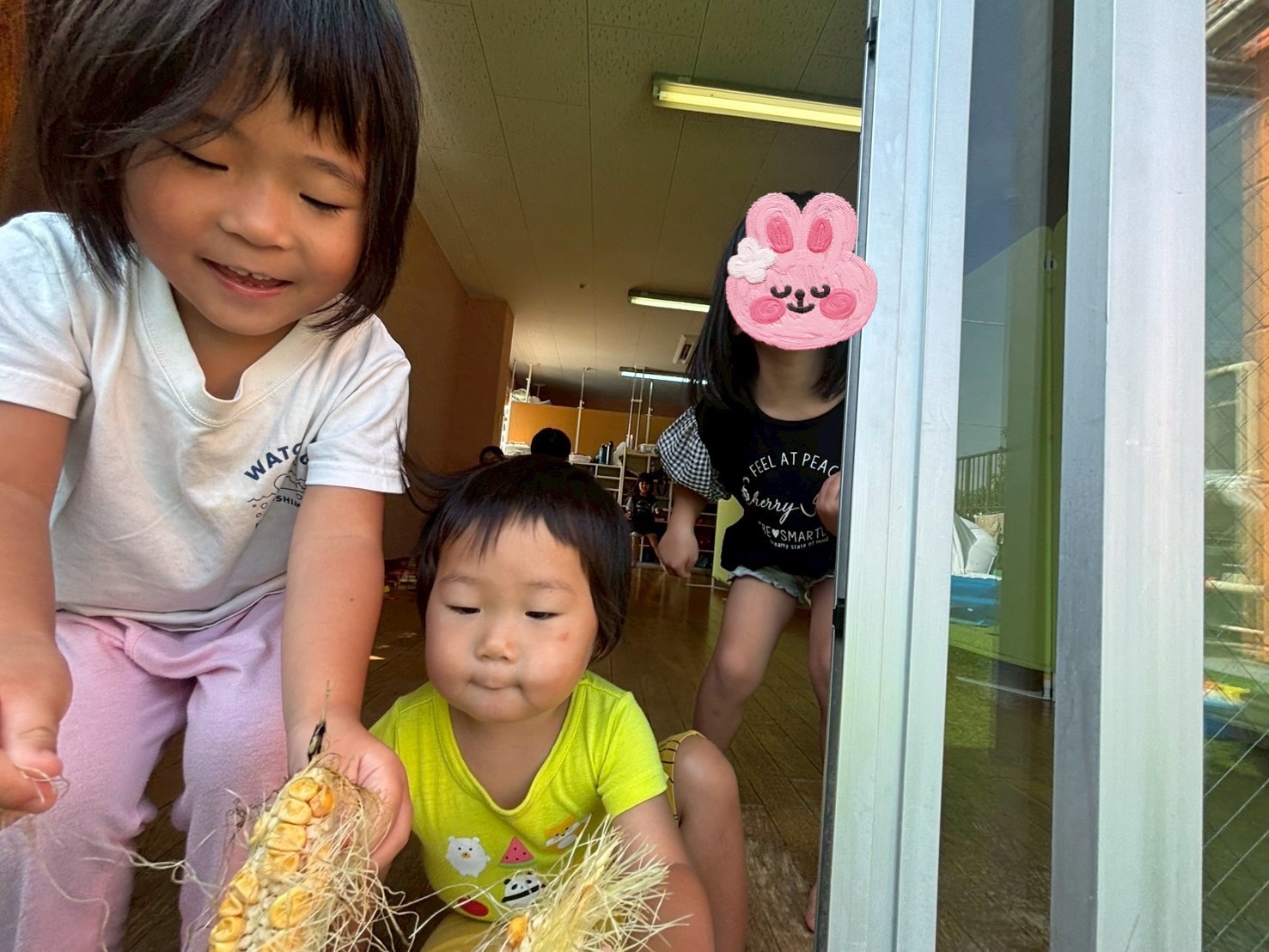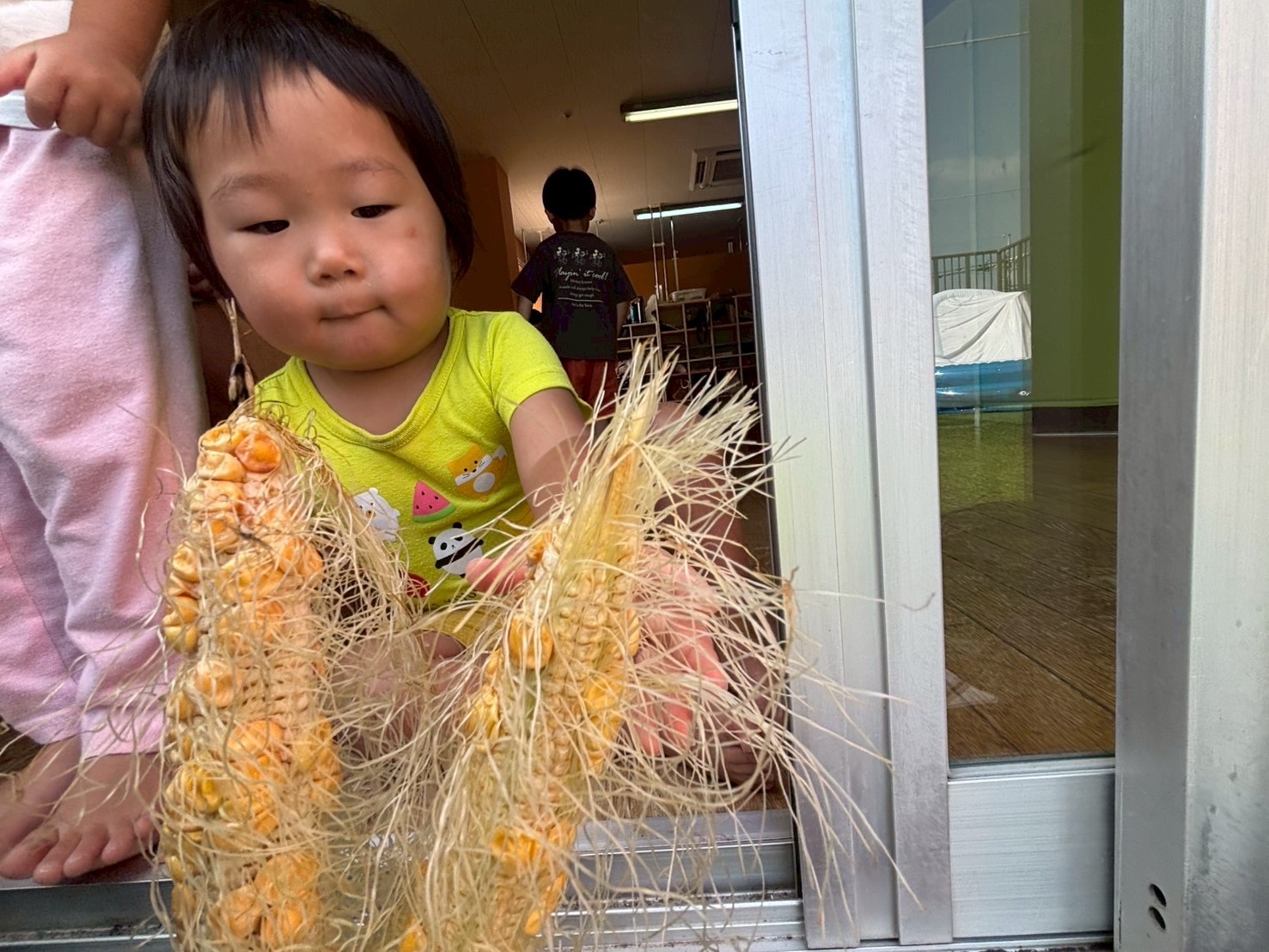 今週、あいびぃ畑で育ててた、とうもろこしを収穫し皮をむくと・・・