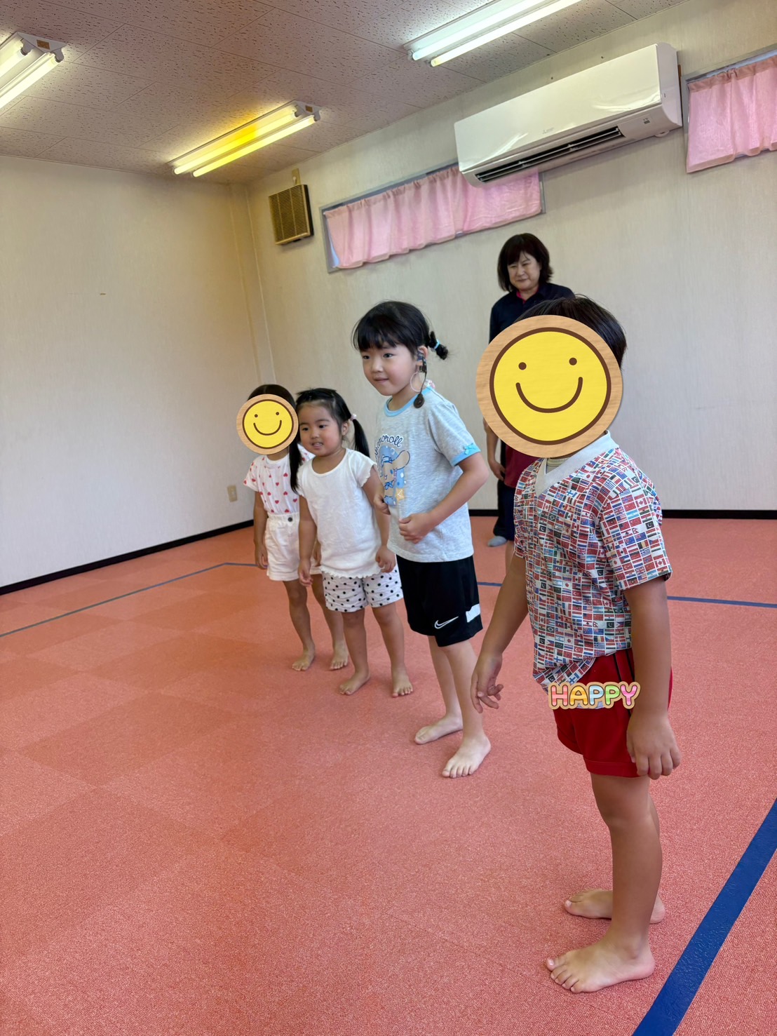 普段の流れ通りの朝の準備~始まり、サーキット遊びに転がしドッジボール、