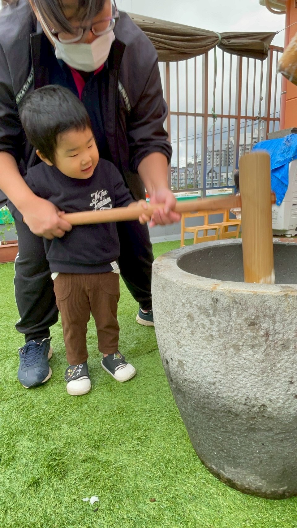 職員と一緒に杵を持ち、一生懸命ついた子!!