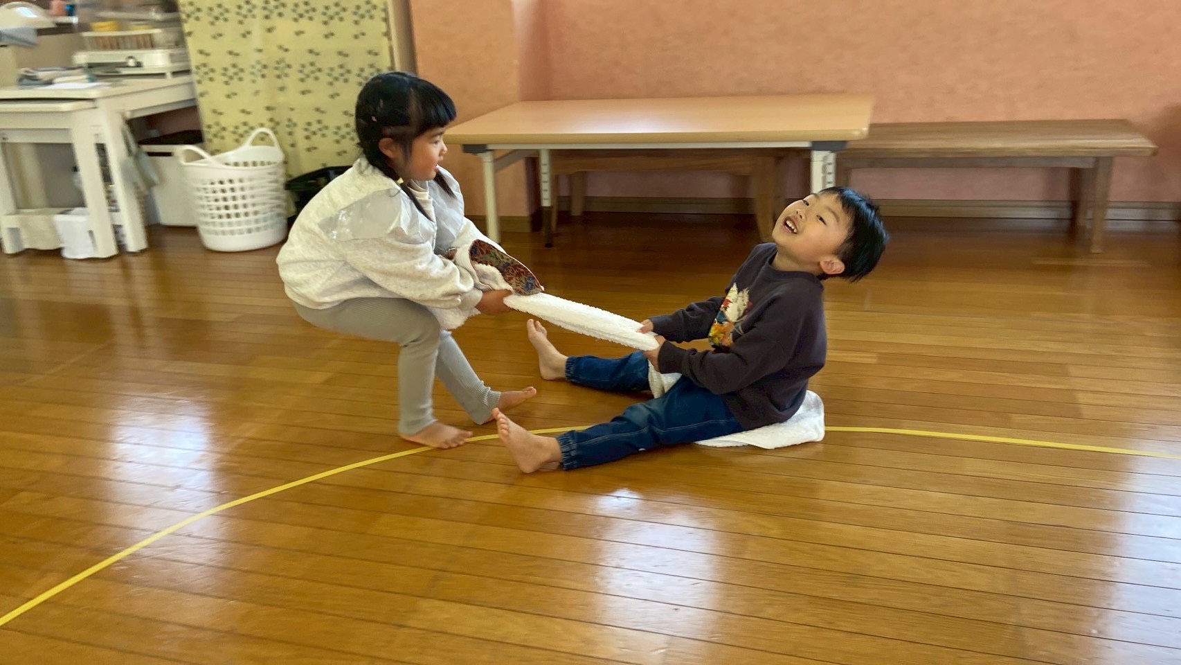 タオルが一枚あるとできる簡単な遊びなので、お家でも遊んでみてください♪