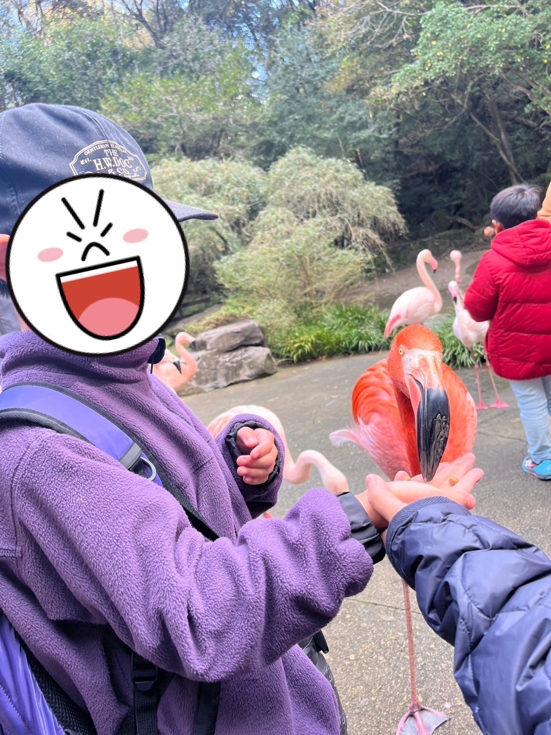 この日は長崎バイオパークへ行ってきました!移動中の車内でもどんな動物がいるのかな~?とワクワクしていた子どもたち♪到着するとさっそく出迎えてくれたオウムやラマに興味津々でした✨入場後はマップを見ながら動物たちに会いに行き、直接触れ合ったりリスザルやフラミンゴにエサをあげる体験をしました😆自分より大きな動物に怖がらずに触りにいける子もいれば、ちょっと離れた場所から観察する子など楽しみ方はそれぞれでしたが、動物たちの生態や動いている様子に目を輝かせていましたよ!また、動物だけでなく昆虫館やフラワーパークもあり、様々な自然を感じることもできました。たくさんの生き物との触れ合いを通して、命をいたわることや大切にする気持ちを育んでほしいと思います😌