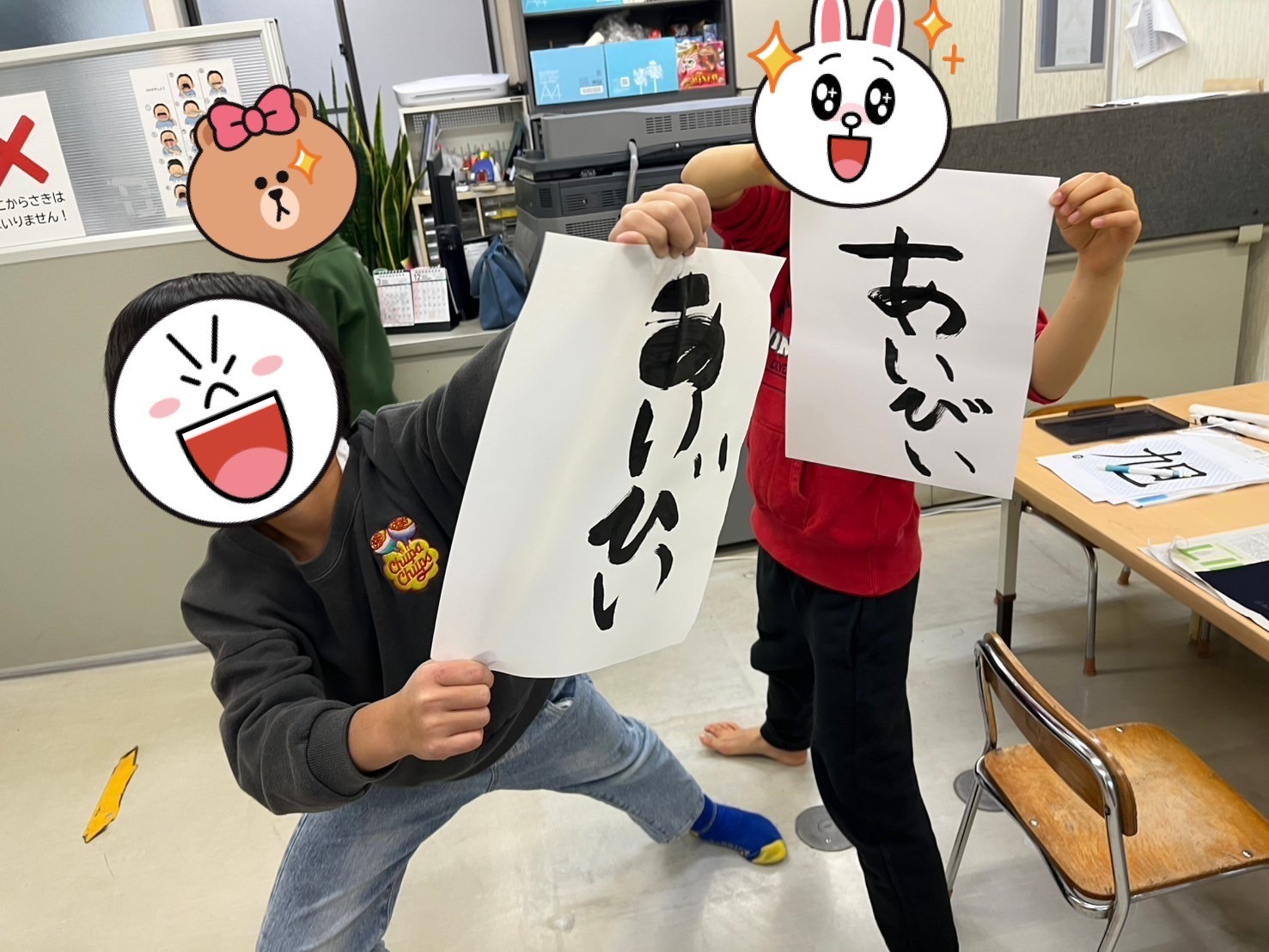 あいびぃに戻ってからは書き初めをしました。習字をするのが初めての子ばかりだったので、習字道具に興味深々の子ども達。丁寧に書く子もいれば大胆に書く子もいて、それぞれ味のある書き初めになりましたよ🖌