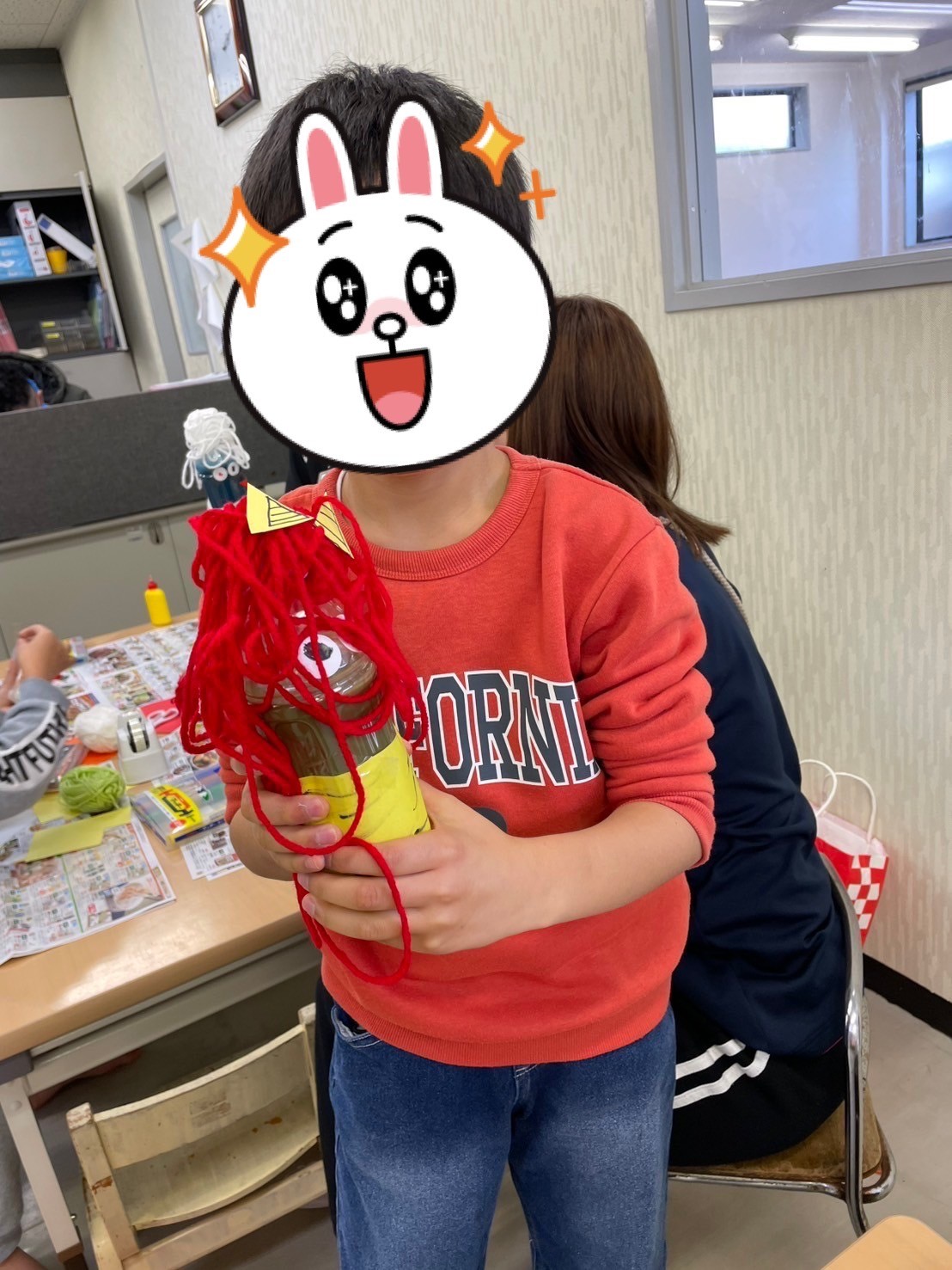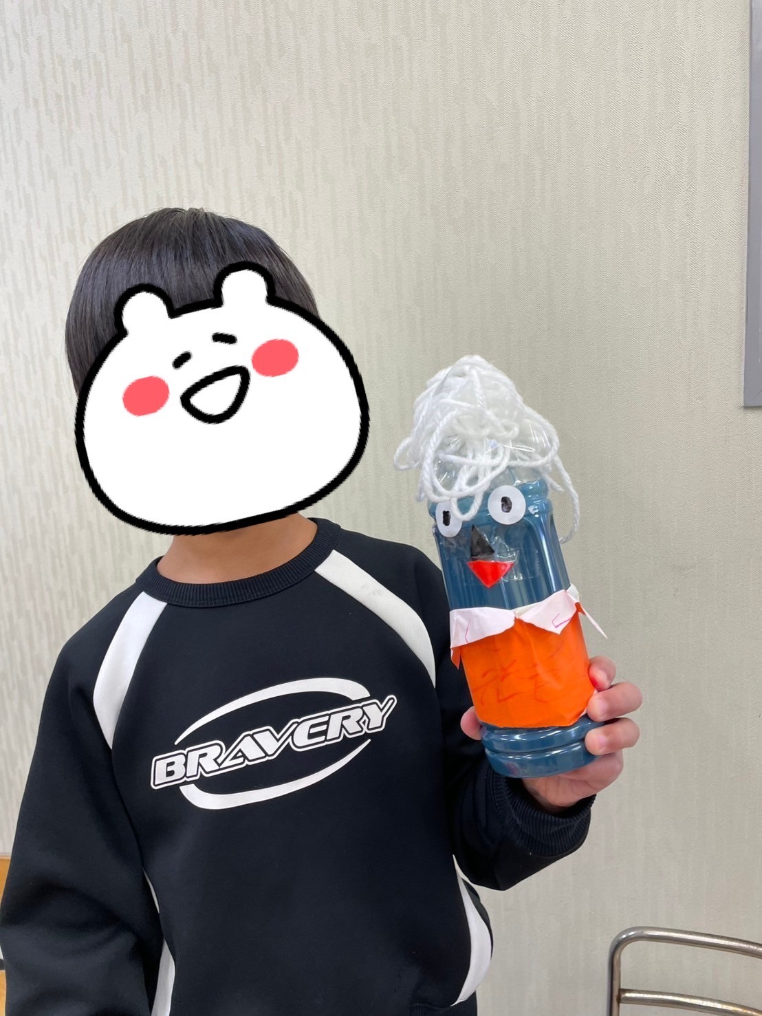 午後は壁面工作で節分の鬼と恵方巻を作ってもらいました👹ペットボトルで色水を作り顔のパーツを貼り付けてもらったり、折り紙を恵方巻のように巻いて作ってもらいました。自分の作った鬼に愛着が芽生える子もいたりと、大事に丁寧に作ってくれました😆最後は牛乳パックを使ったゲーム遊びもして楽しむことも出来ましたよ!