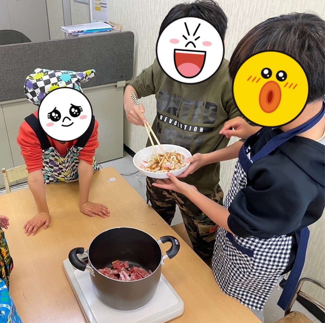 午前中はちゃんぽんを作って腹ごしらえ🍥もちろん子ども達みんなで手作りしてもらいました😉具材を切ったり炒めたりをみんなで順番に行い、あっという間に完成!自分たちで作ったものは格別に美味しいようで、おかわりする子が続出していましたよ😋