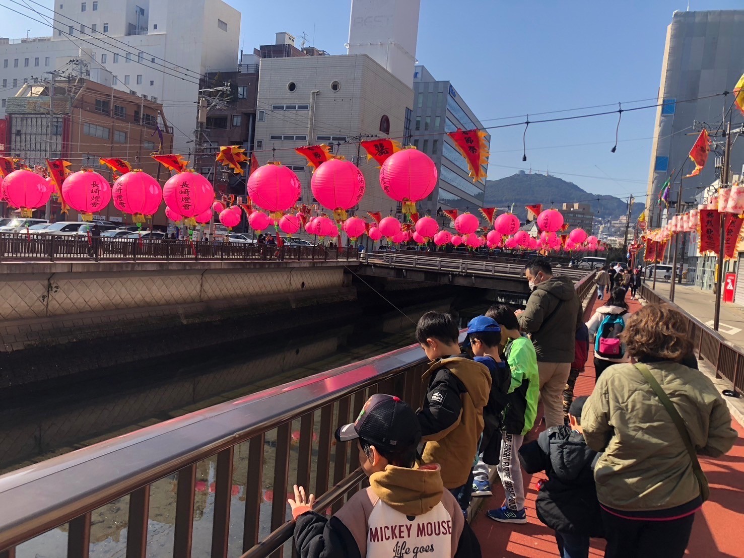 午後は楽しみにしていたランタンフェスティバルへ!中島川に渡ってあるランタンを見上げたり、銅座町にある「安息の日」の彫刻に会いに行ったりと中央公園から湊公園までの距離を、楽しみながらたくさん歩いて散策出来ました😄