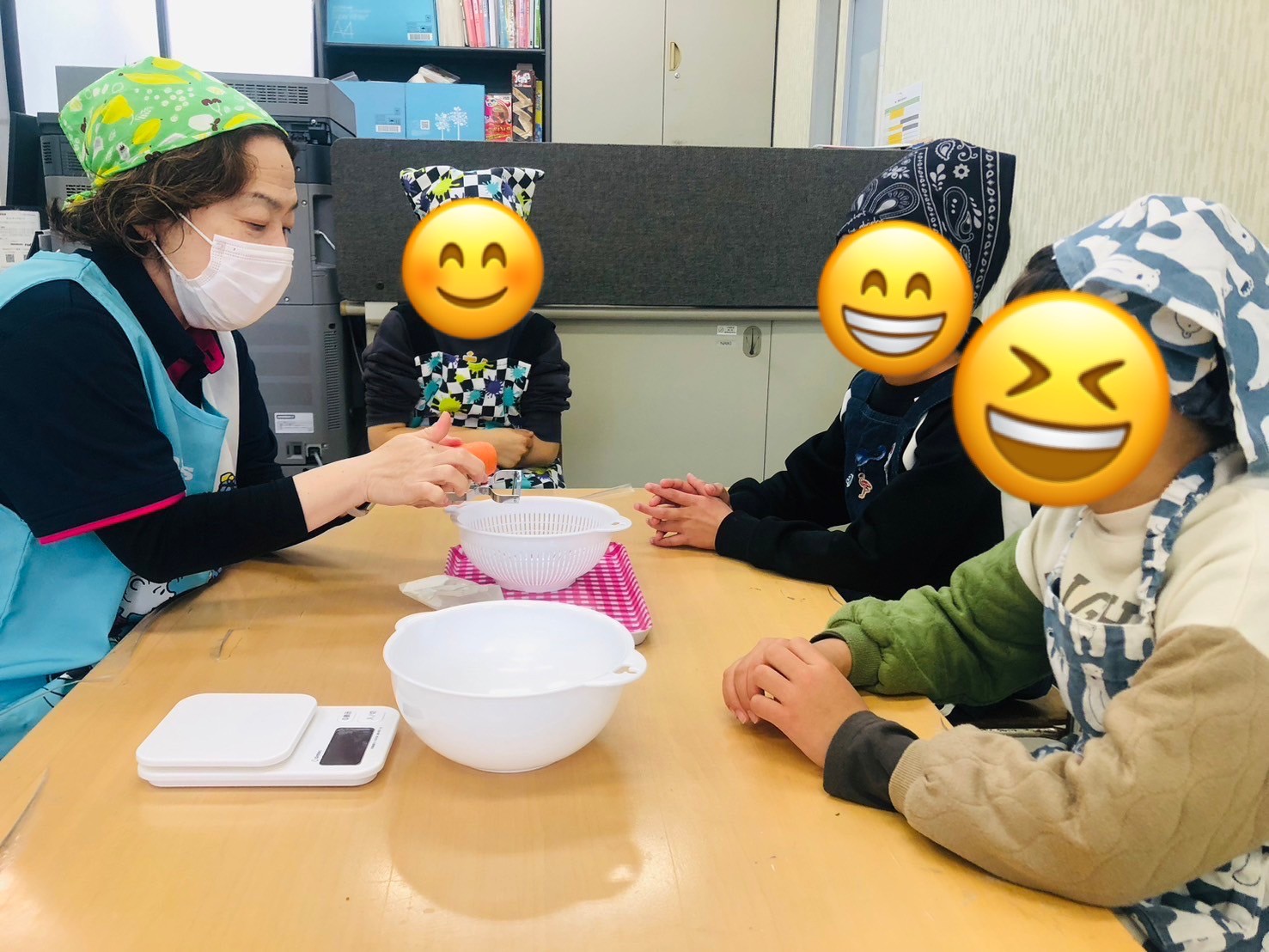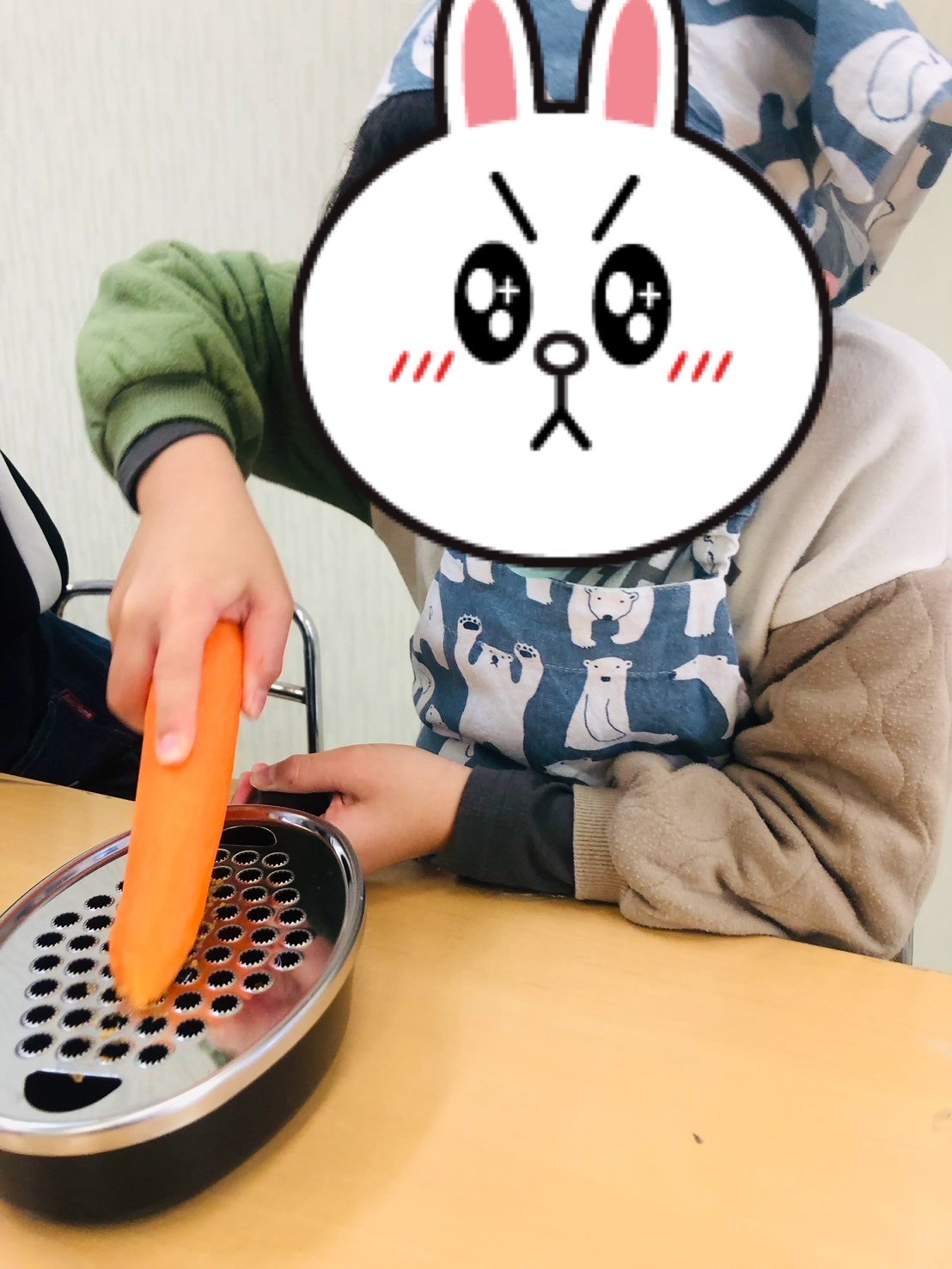 午後はあいびぃに戻っておやつ作りをしました!今回は【人参蒸しパン】を作っています🥕人参をすりおろしたり、泡だて器で生地をよく混ぜたりしてもらいました♪出来上がった蒸しパンはふっくらあま~い匂いが漂っており、子ども達も早く食べたくてうずうずしていました💗中には人参が苦手な子もいましたが、食べてみると人参っぽさがなく甘くて美味しかったようでおかわりをしていましたよ😋