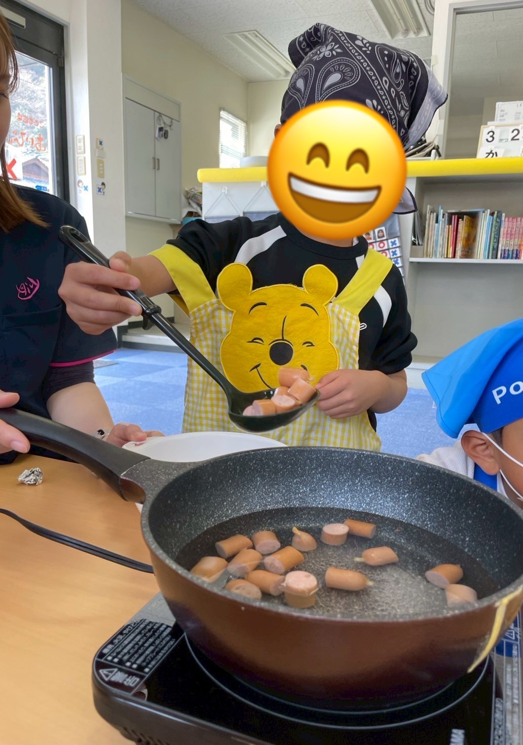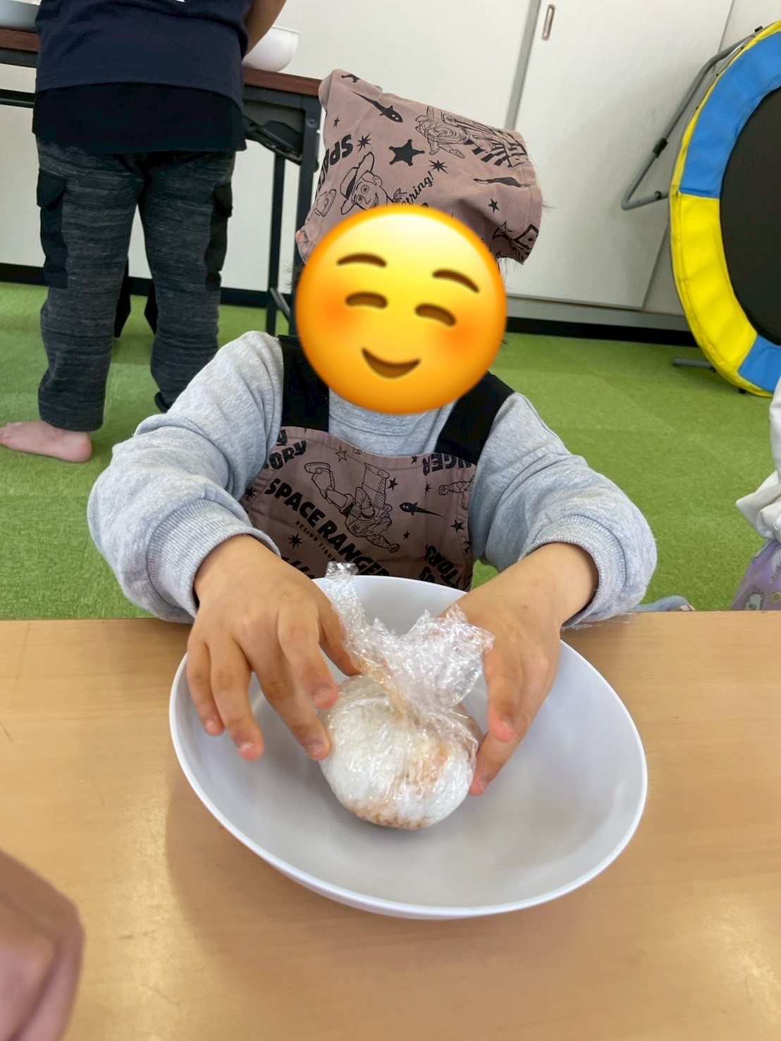 この日は午前中に爆弾おにぎりを作りました!まずは具材の準備からスタート!ミートボールやウィンナーを茹でたりツナマヨを作ってもらったりと、子ども達の手で次々とおにぎりの具が出来上がっていきます♪白ご飯の中に様々な具材を選んでもらい、おにぎりの形にニギニギ👐🍙完成した後はおにぎりを持ってウォーターフロント公園へ遊びに来ました!