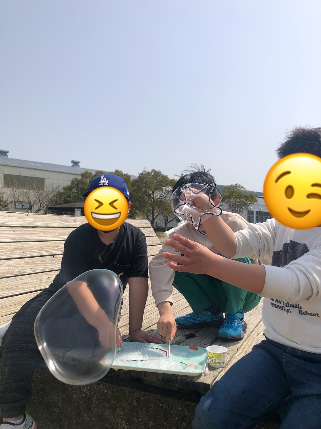到着してすぐにみんなが楽しみにしていたおにぎりを食べました!大きなおにぎりを美味しそうに頬張りながら近くの友達と楽しく食事を進めていましたよ😋昼食後は磯遊びを楽しんだり、持ってきたシャボン玉で遊んだりと普段と違う遊びが多く見られました✨