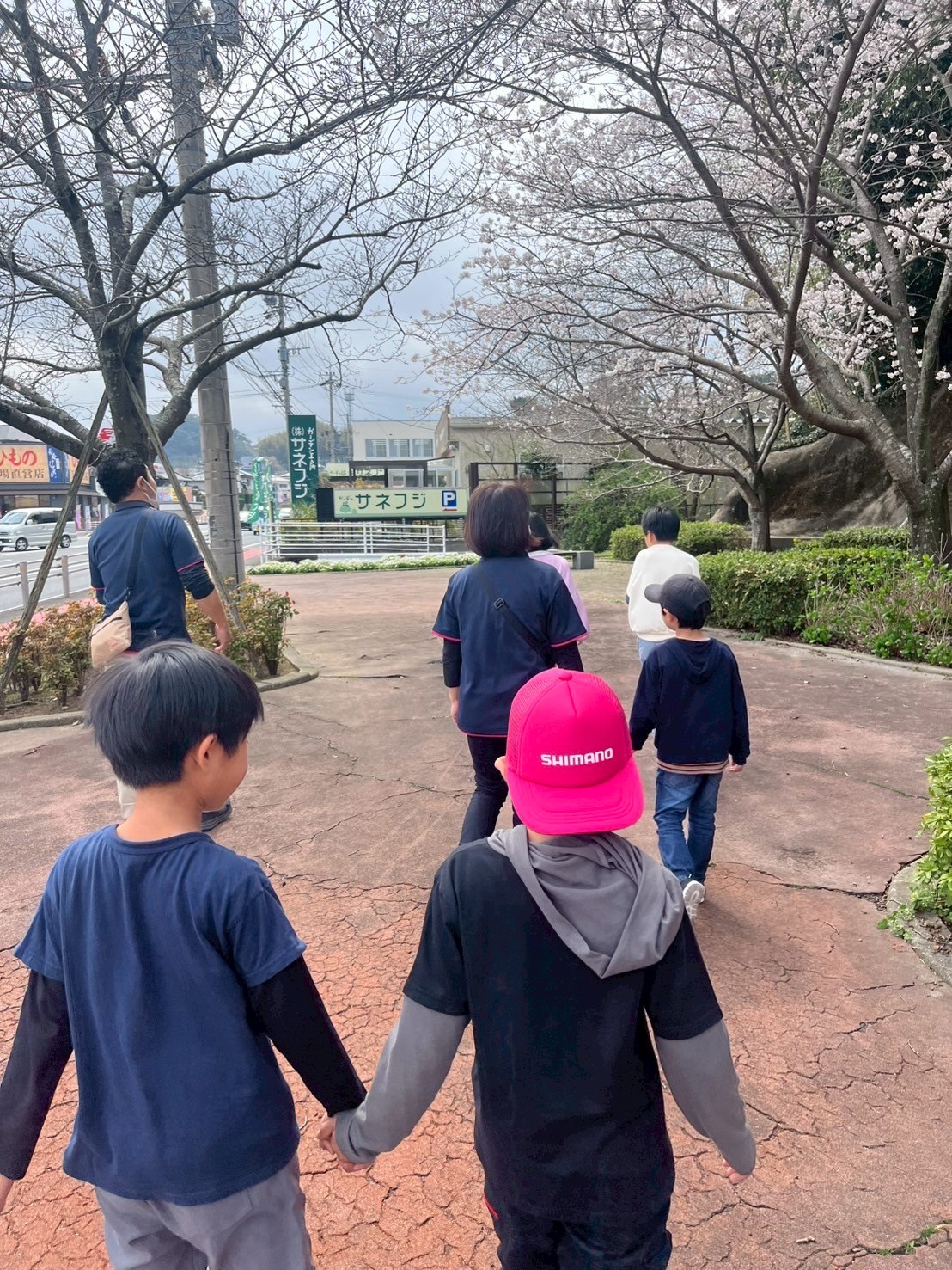 近所の丸亀製麺に昼食を食べに行ってきました!注文はもちろん、付け合わせを入れるのも席まで持って行くのもほぼ一人でやってもらいましたが、みんなとても上手に出来ていましたよ😊注文したうどんはとても美味しかったようで、大きな器に入っていたうどんが、みるみるなくなっていってました😋お腹がいっぱいになった後は歩いてあいびぃまで戻りましたが、近くに桜が綺麗に咲いていたので思わず足を止めて見つめていた子ども達でした🌸