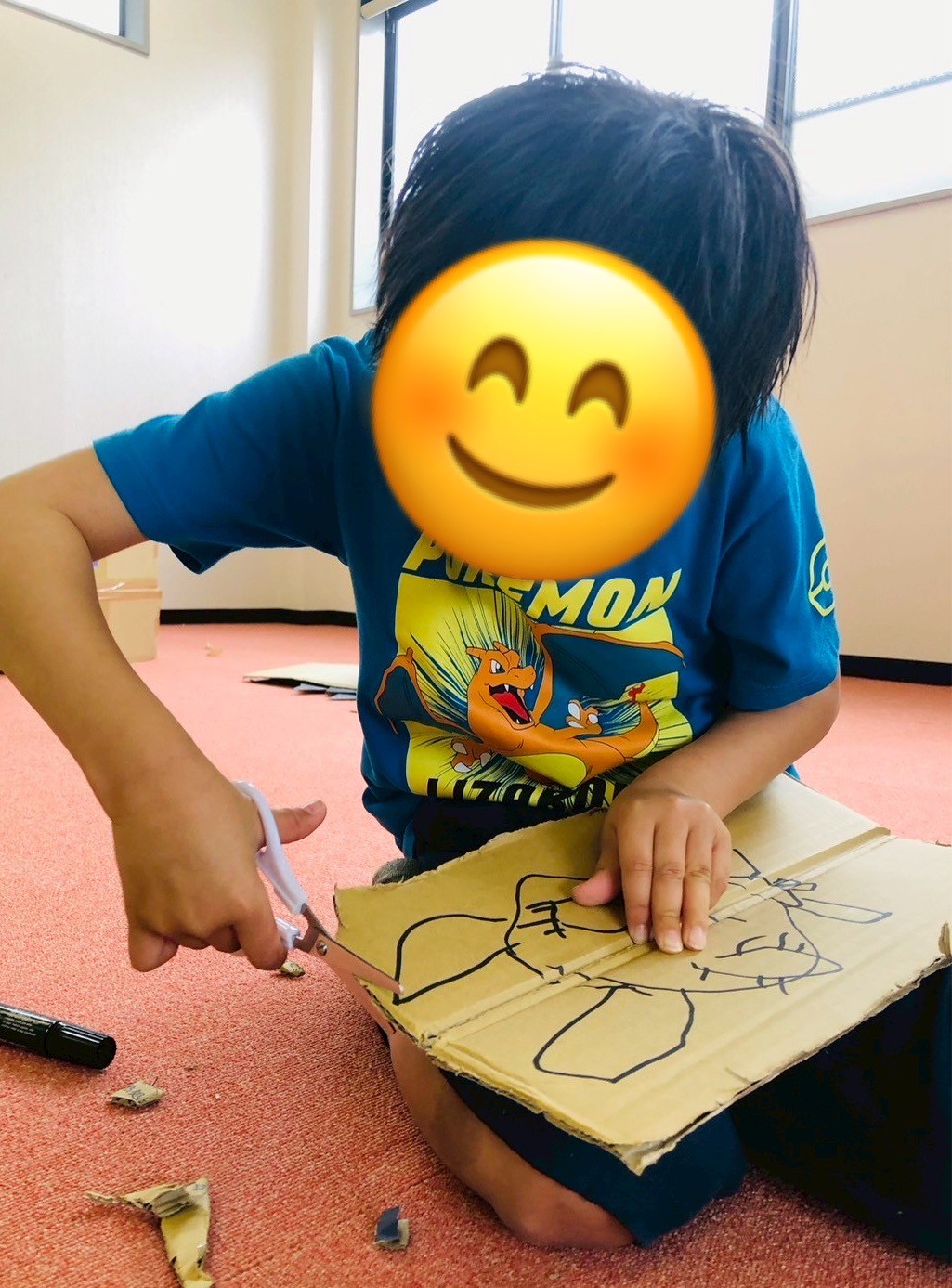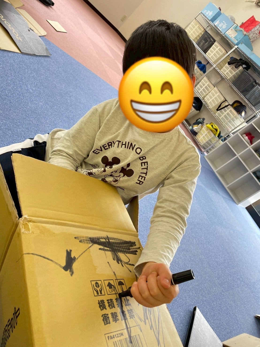 あいびぃに戻り午後は段ボールを使った工作を行いました📦大きいものから小さいものまで、いろんなサイズの段ボールを切ったりつなげたり絵を描いたりしながら、自由な作品作りを楽しみました😁好きなキャラクターやゲーム機を作ってみたり、実際に遊べるおもちゃを作ってみたりと一人ひとり異なる面白い作品を仕上げてくれましたよ♪