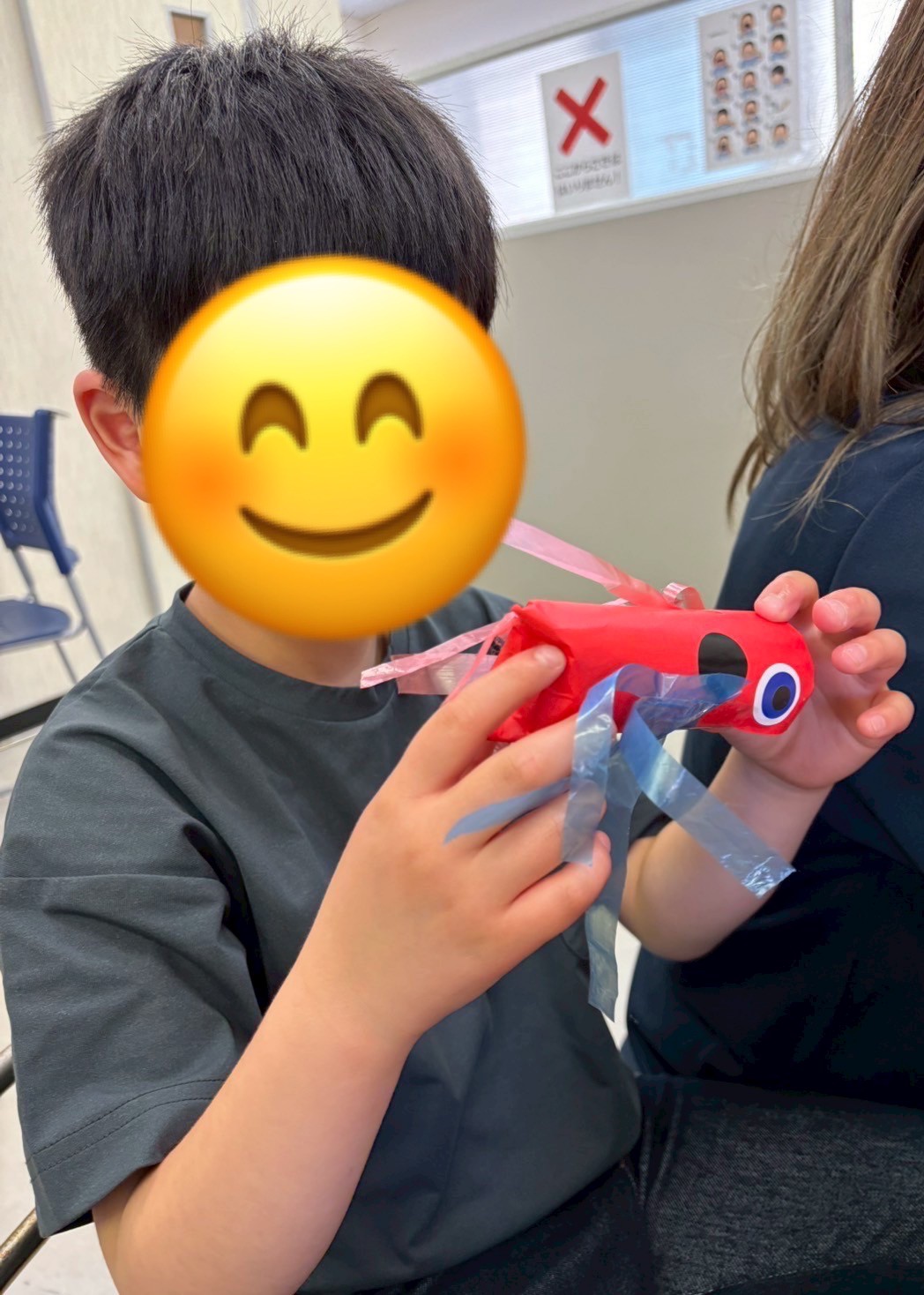 午後はこいのぼり工作をしました🎏手先を使った工程が多かったので集中して作ってくれました!鱗の模様は子ども達でアレンジしてもらい色鮮やかな鯉が出来上がりましたよ♪