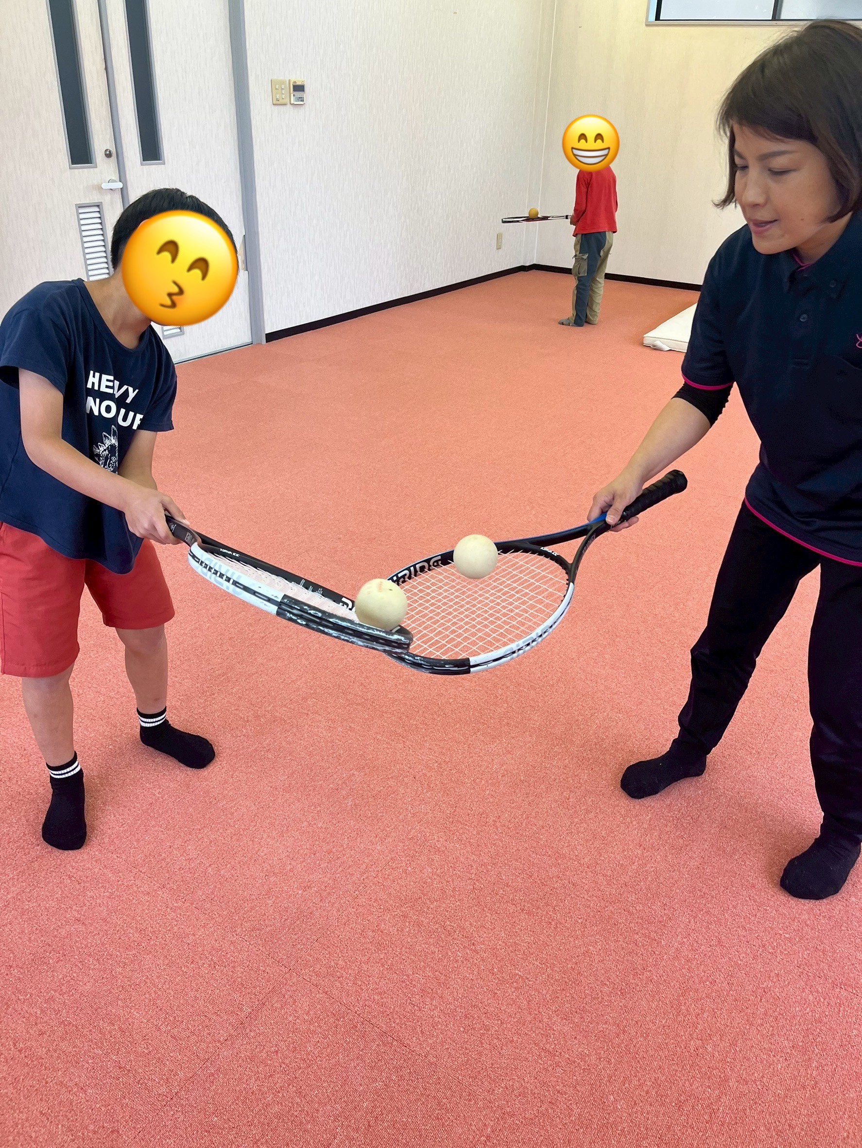 この日はテニス教室の日でしたがあいにくの雨…☔️なので事業所の2階を使って室内テニスを行いました🎾