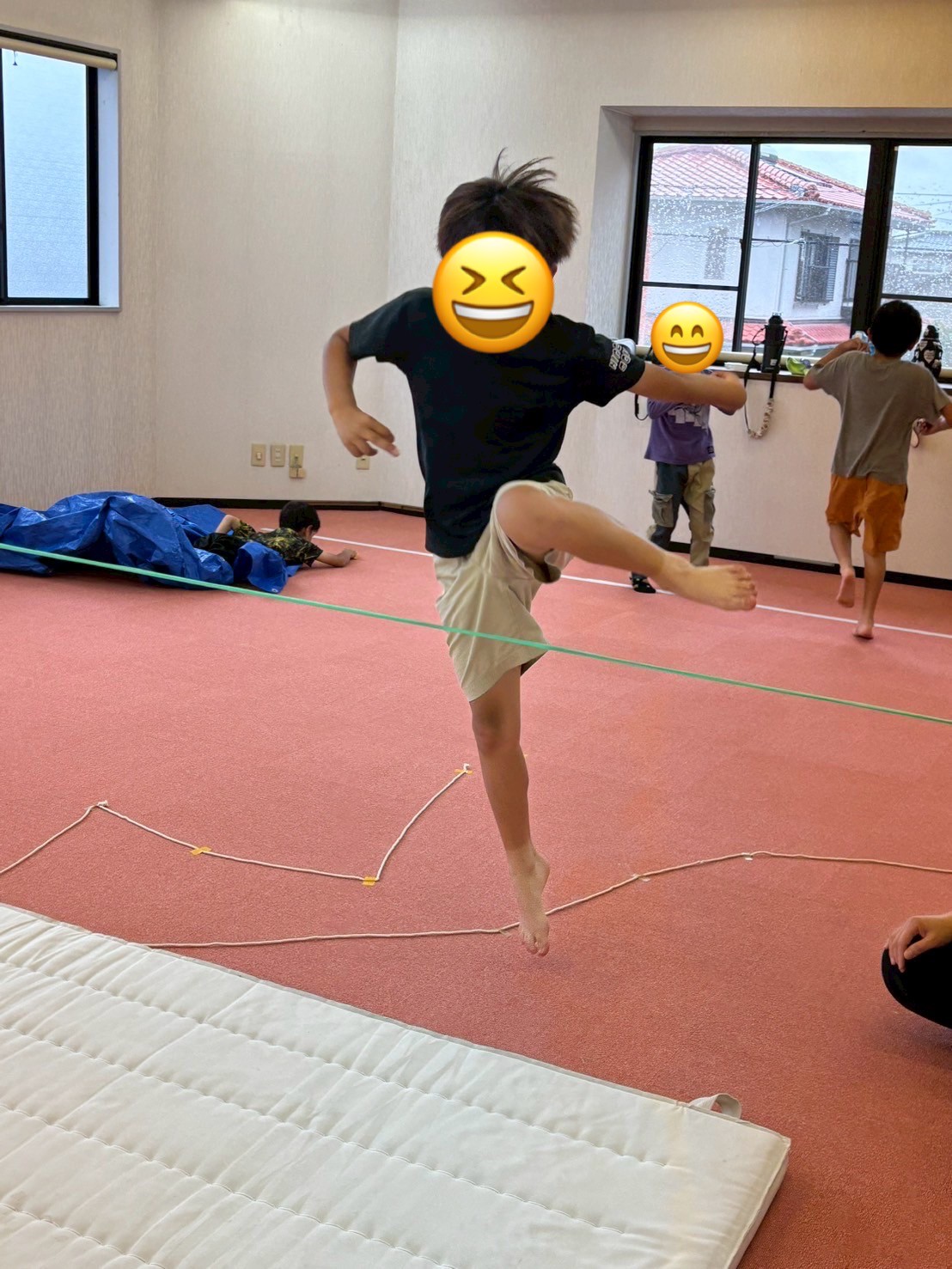 先週に引き続き今日も雨が降り、外活動が中止になってしまいました☔子どもたちが少しでも楽しめるよう、室内でいろんな遊びをやってみました!午前中は忍者ごっこで体を動かして遊んでます。本物の忍者のような特訓コーナーを設け、それぞれ子ども達に挑戦してもらいました💪敵(職員)の攻撃を避けたり、仕掛けに当たらないよう潜り抜けたりなど、楽しみながら体を動かして発散しました😆後半は子ども達で遊びを考えながら楽しく過ごしていましたよ!