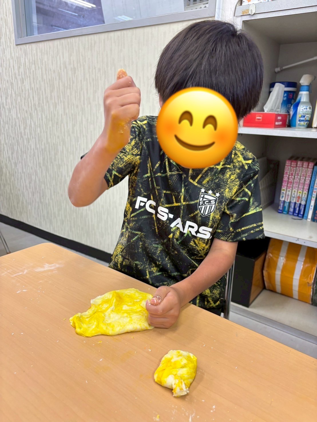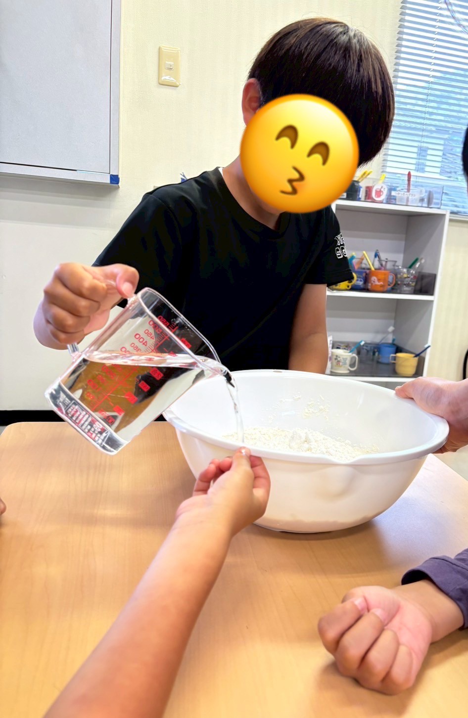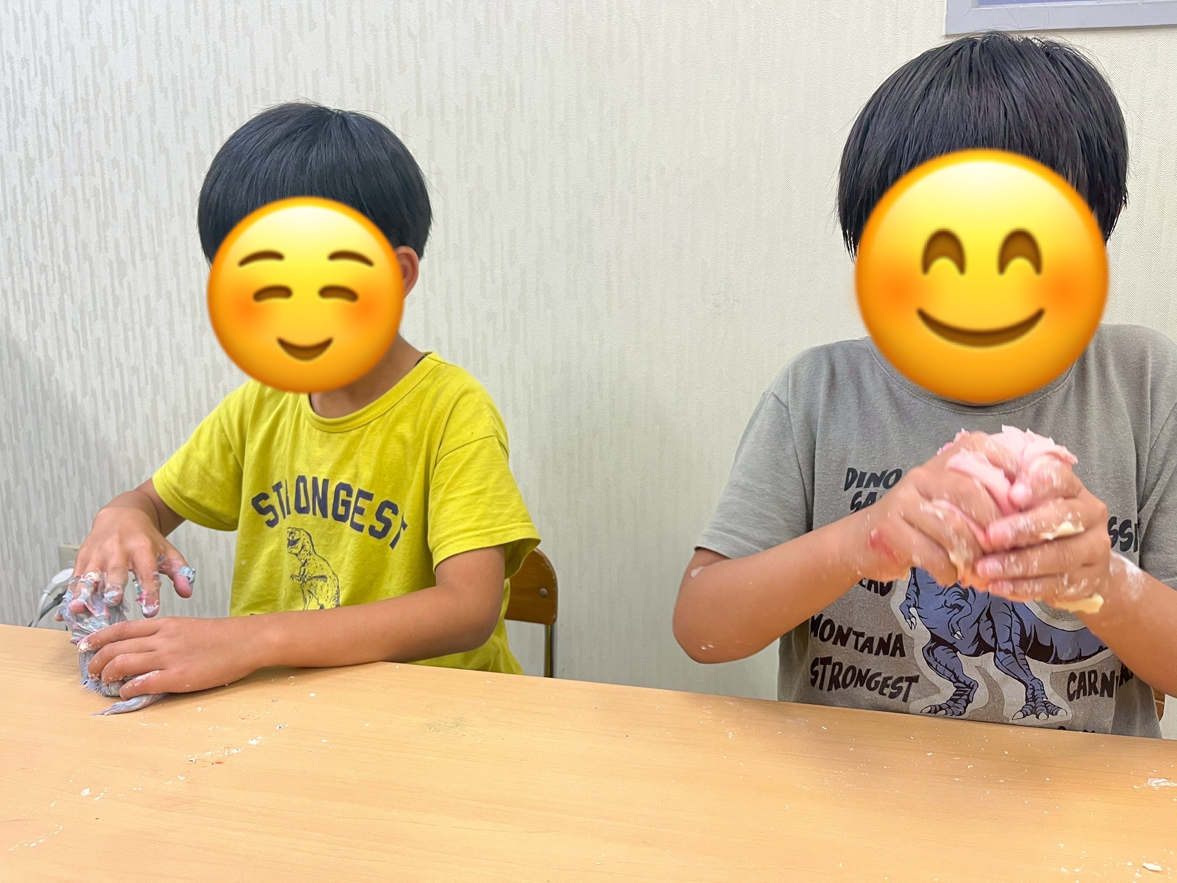 午後は小麦粉ねんどで感触遊びを楽しみました♪ねんどを作るところからやってもらい、段々とねんどになっていく様子を見て「もう触ってもいい?遊んでもいい?」と待ちきれない子ども達🤭出来上がったねんどに食紅で着色してもらい、好きな形や色にアレンジしながらもちもちの感触を楽しんでいました💕