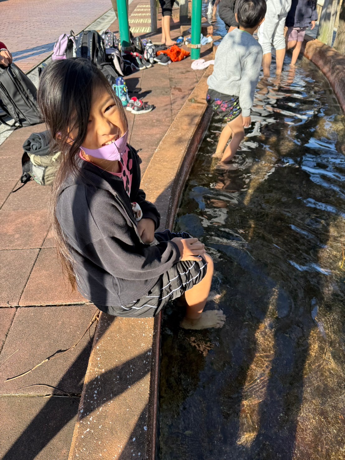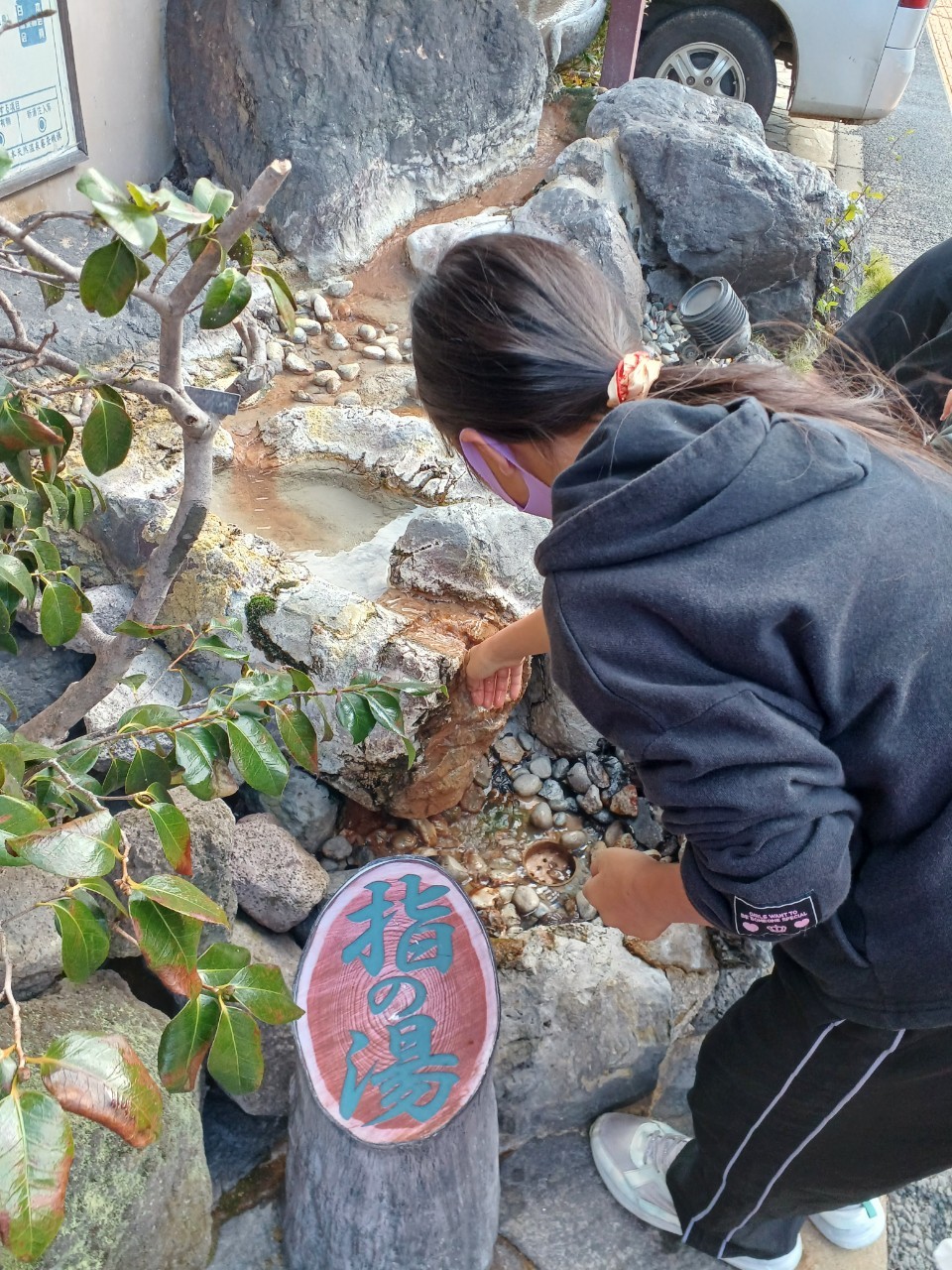 駄菓子を買った後は、みんなで足湯体験へ♨