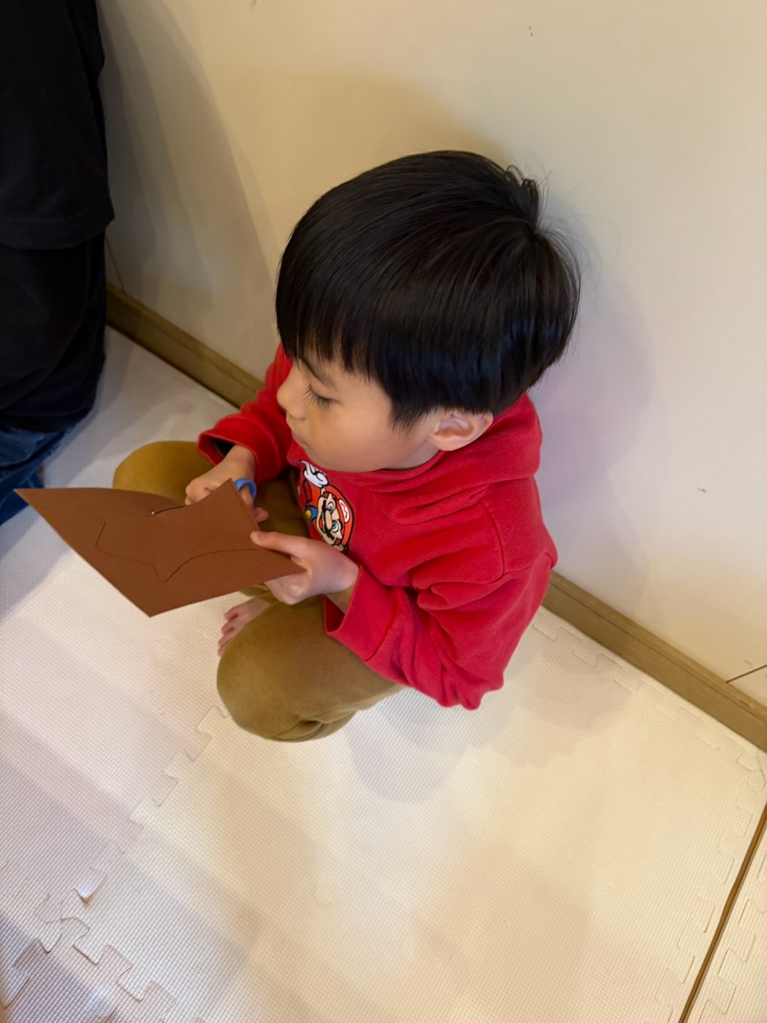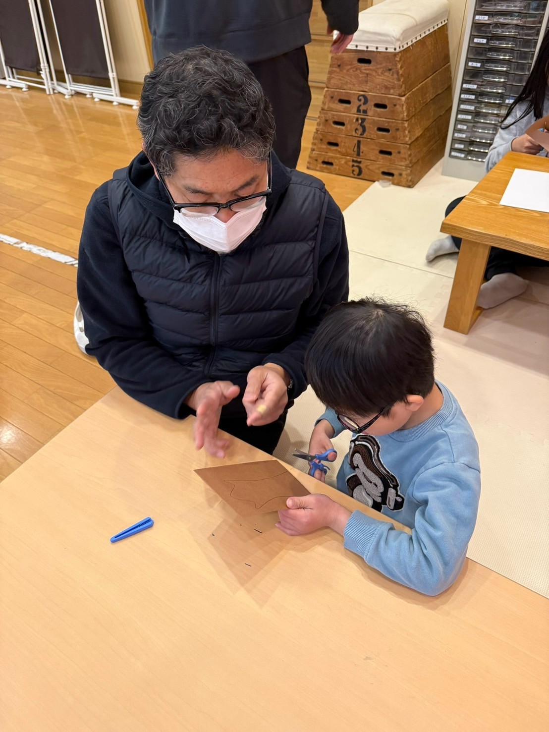 まずは木の型を切り、花紙か折り紙かを自分達で決めます😁