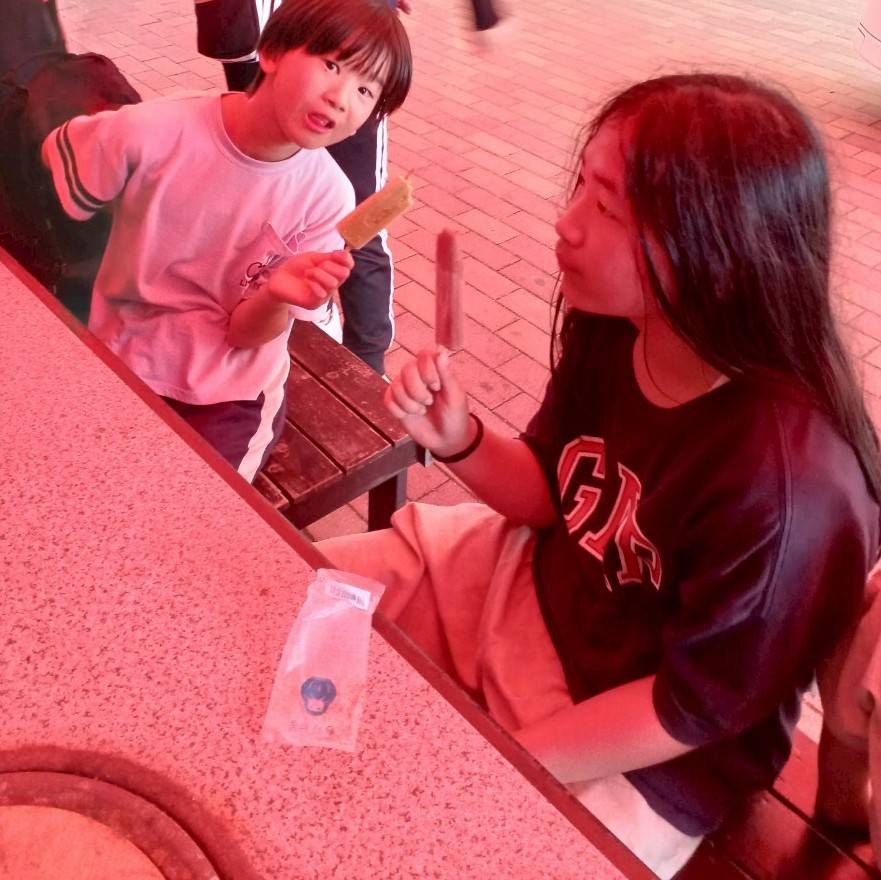 汗びっしょりになるまで遊んで、おやつには冷たいアイスキャンディーか、ほかほかのたい焼きを食べて大満足🥰❤️❤️