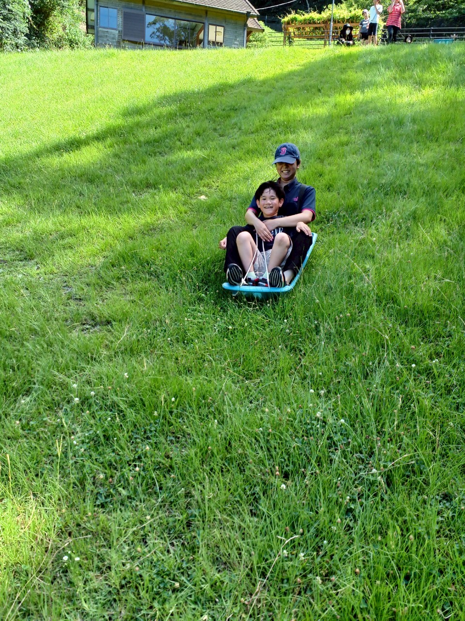 少し涼しかったので、外のアスレチックと草スキーでたくさん遊んで大はしゃぎの子どもたちでした🥰