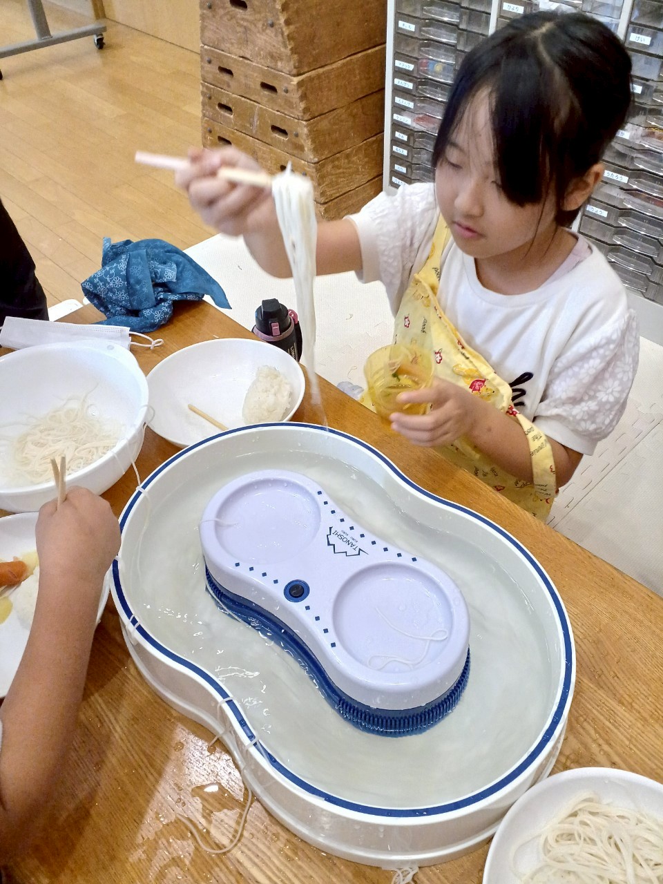 初めてそうめんが流れるところを見る子どもたちは「流れてきた~!!」「早く取らなきゃ!!」と大はしゃぎでした😍😍