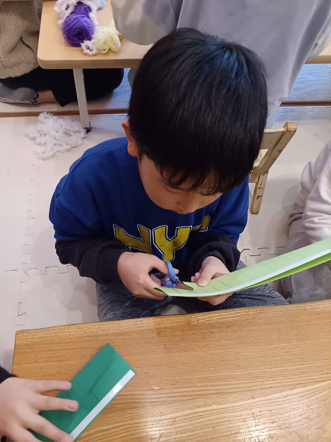 線上を上手にハサミで切り、丸くしてシールを貼ったり、飾り付けをしました✌🏻🩷🌟