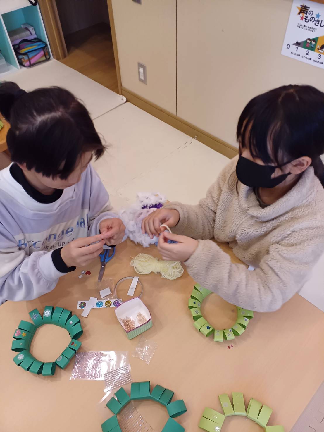 みんな集中して取り組んでいて、とってもかわいい素敵なリースが出来ました🎄🎀❤️💚